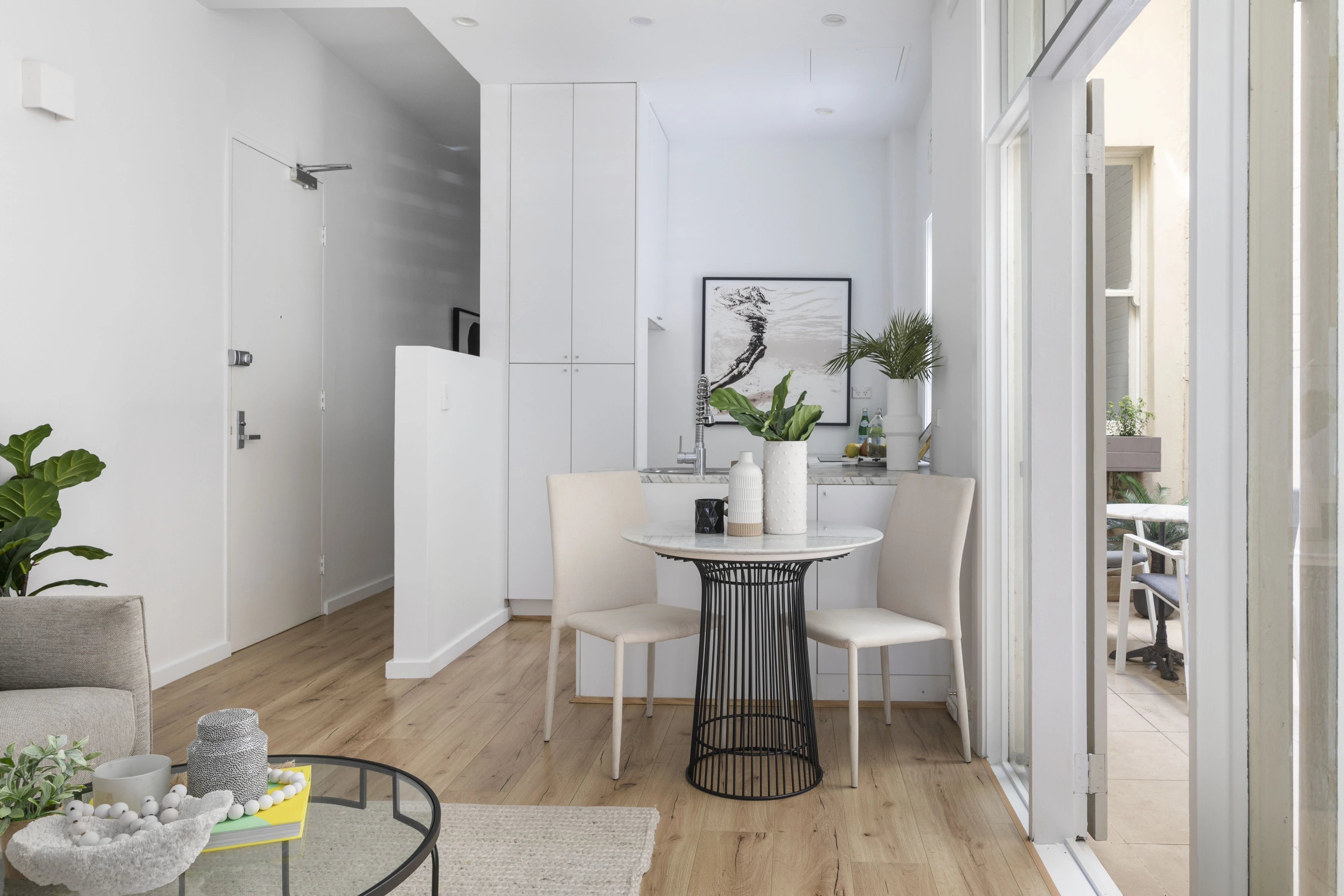 - French doors open to lightwell for air/light