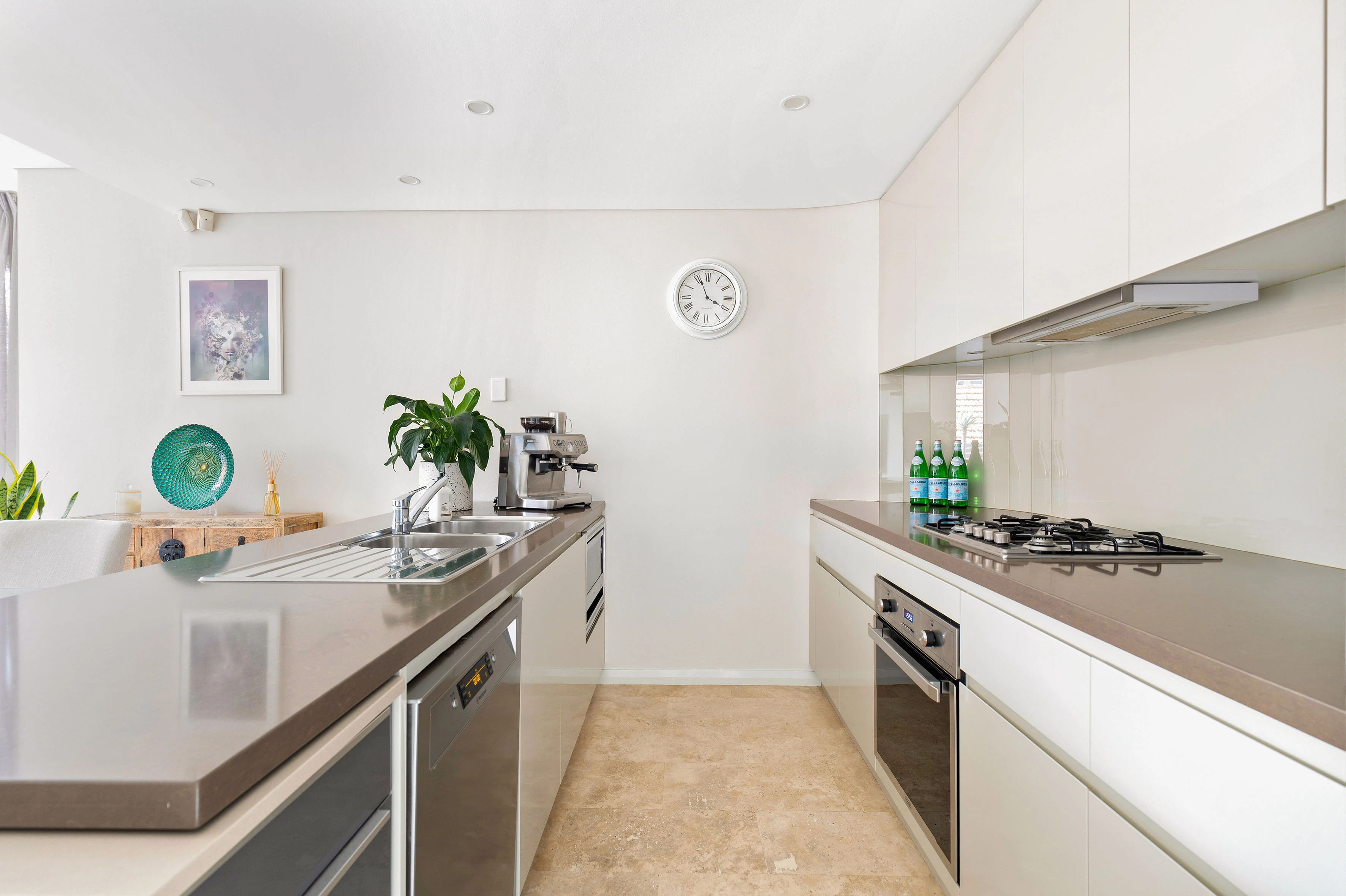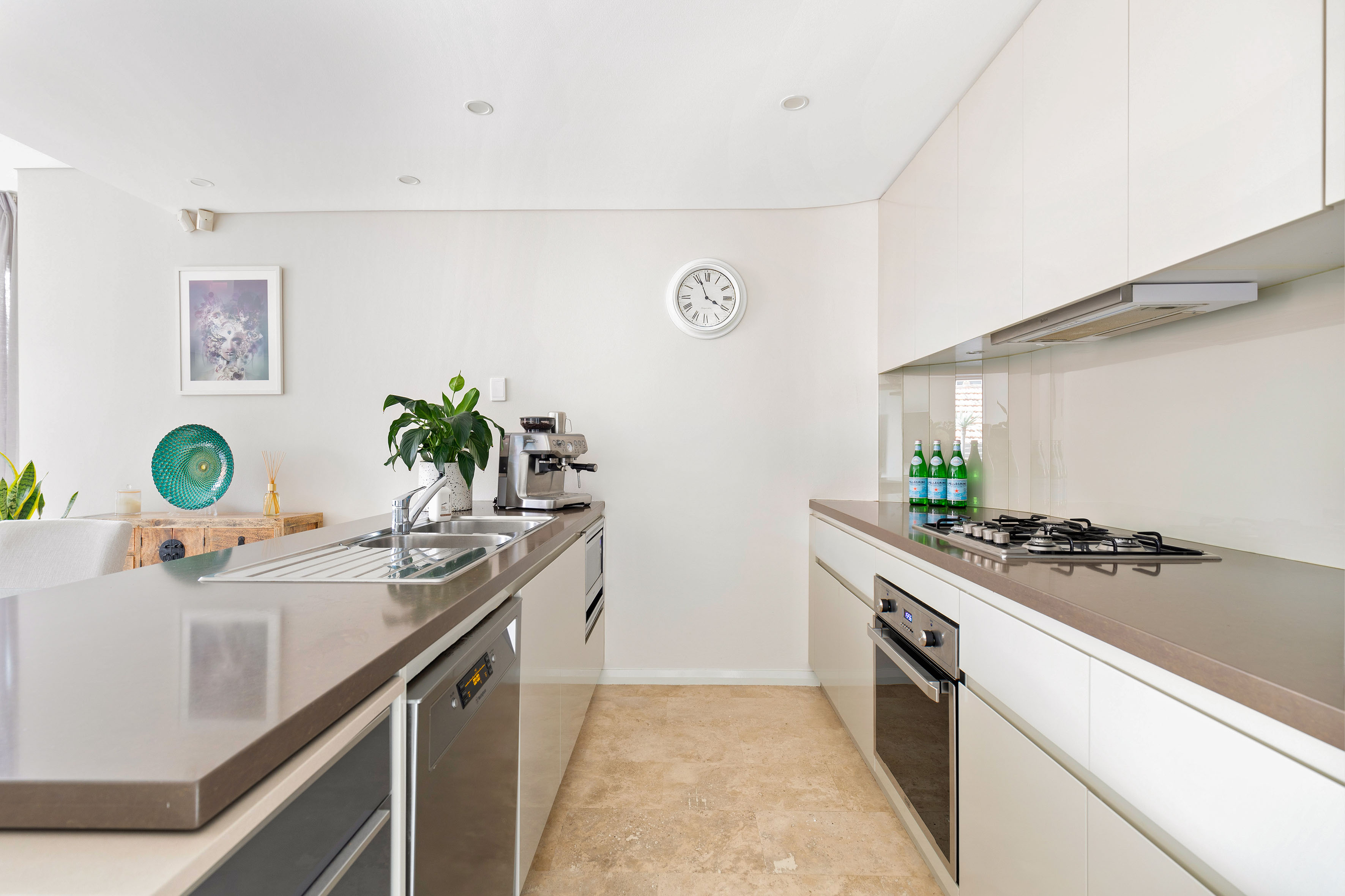 - Stone kitchen, integrated appliances, gas
