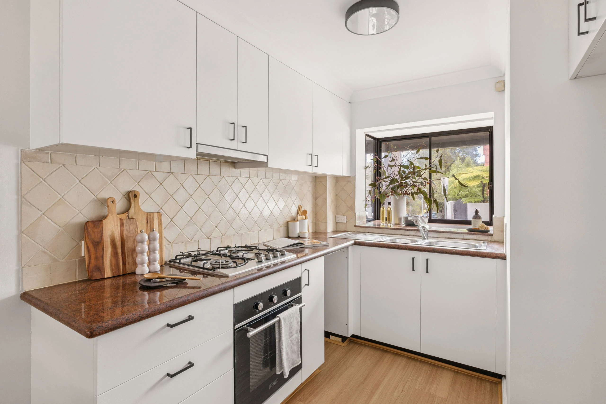 - Gas kitchen with stone benchtops