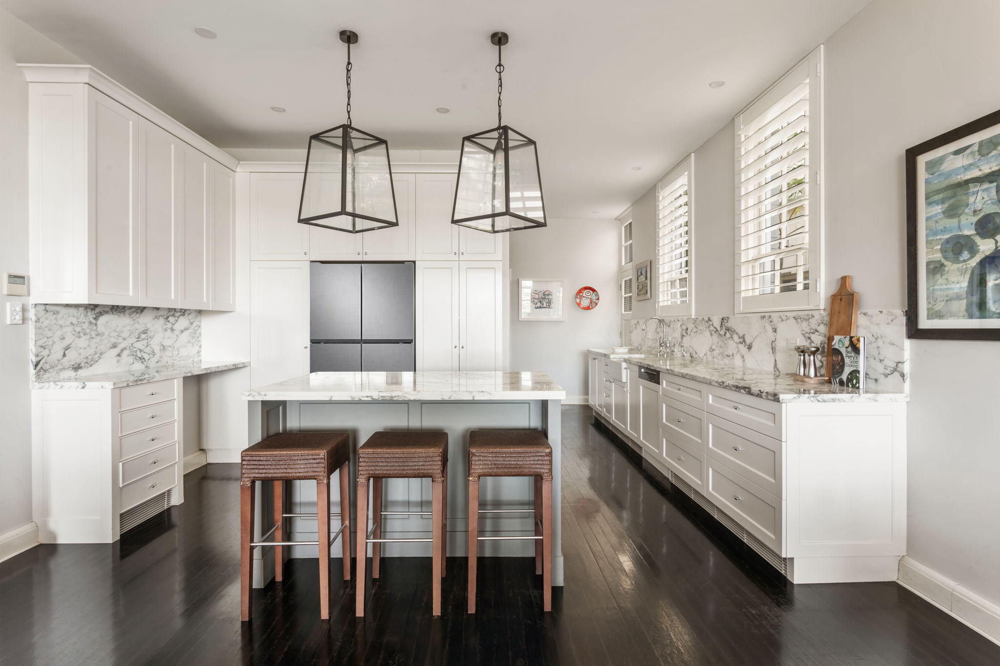 - Carrara marble surfaces on display in the kitchen & three bathrooms