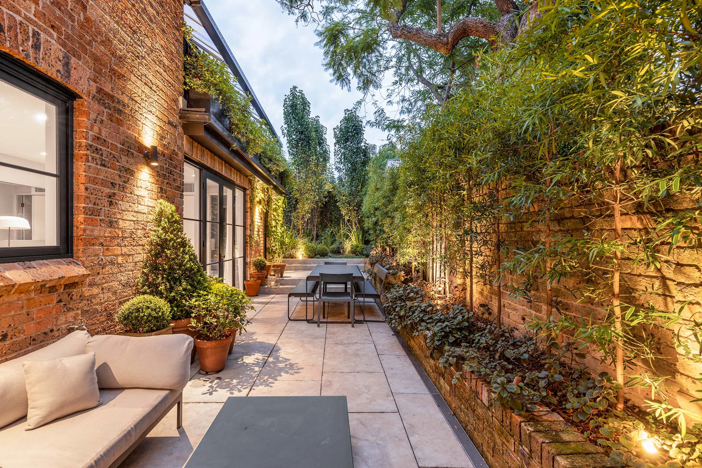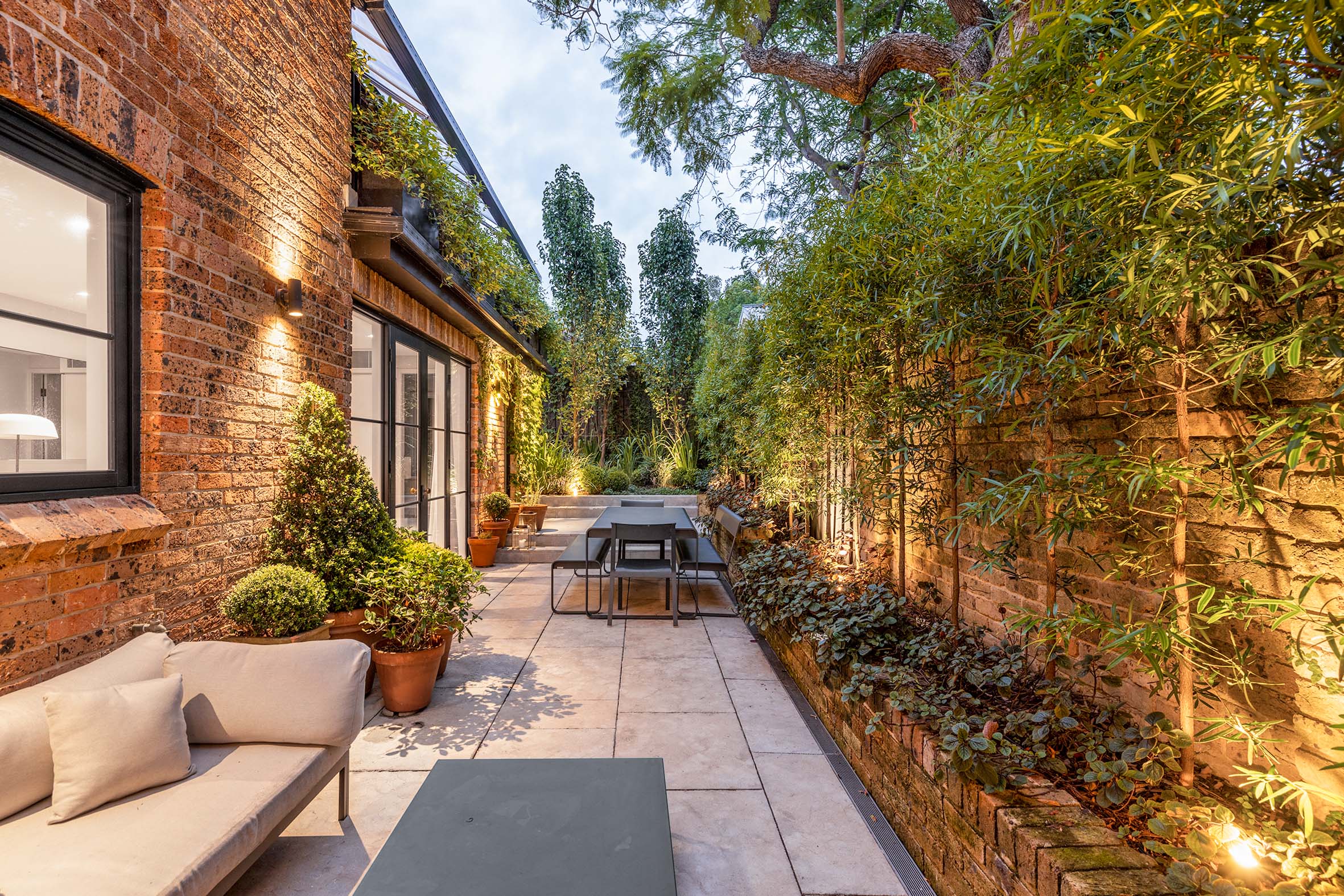 - Glasshouse-style roof terrace + courtyard