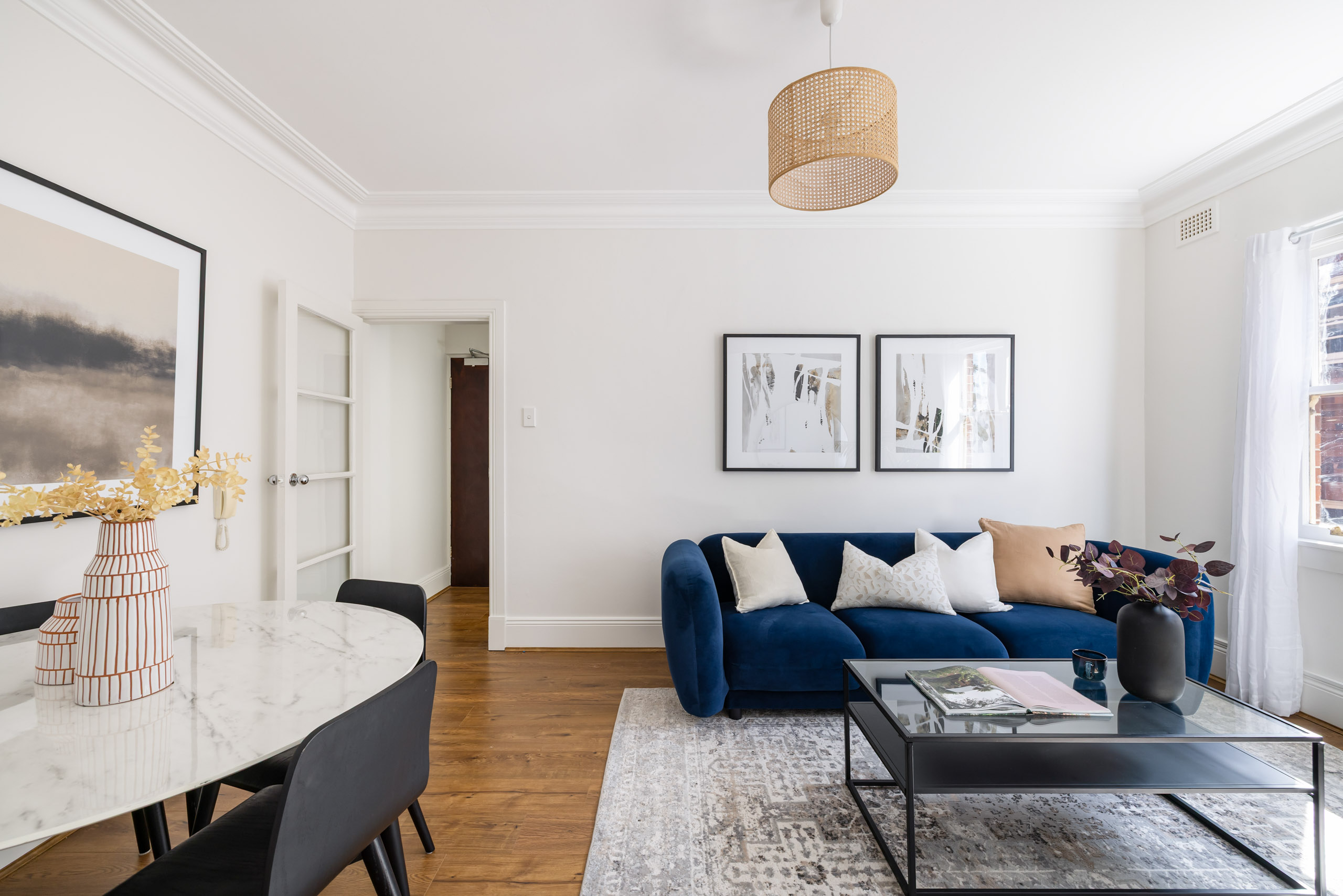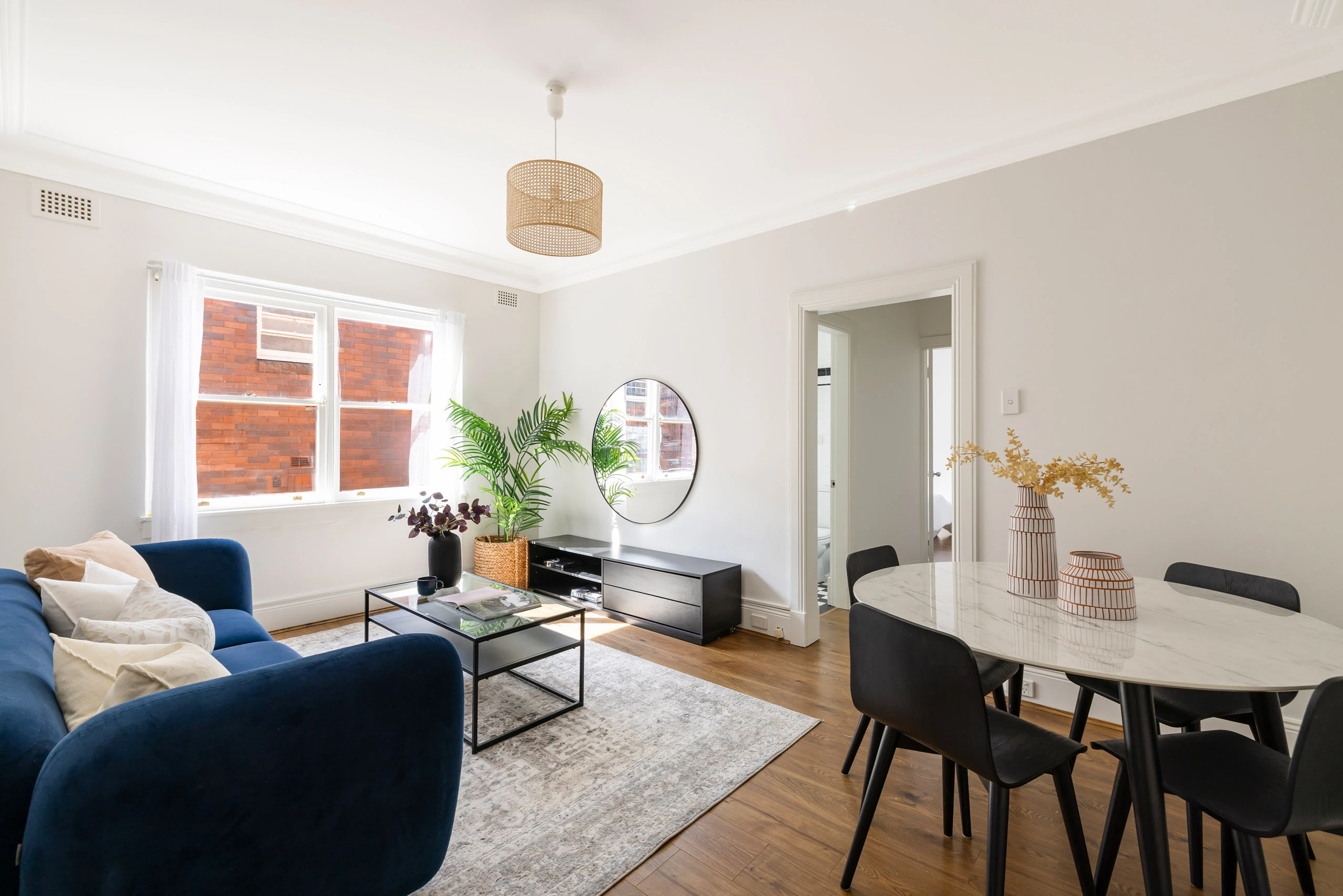 - Bright living/dining with timber floors