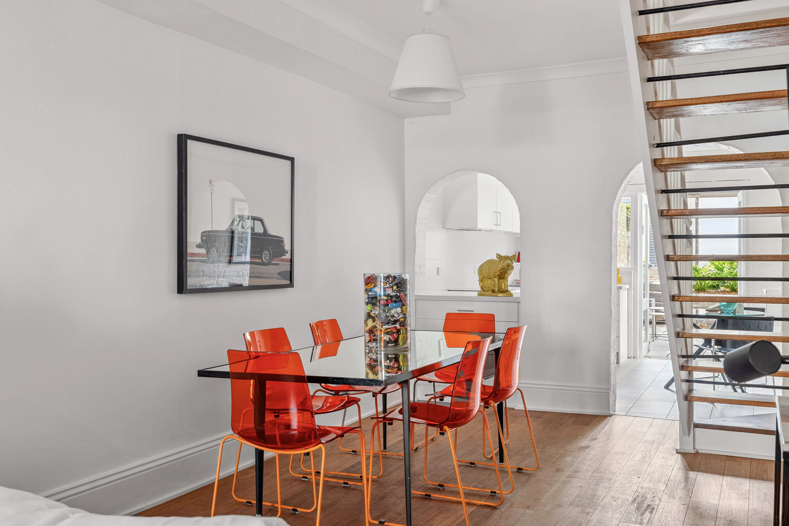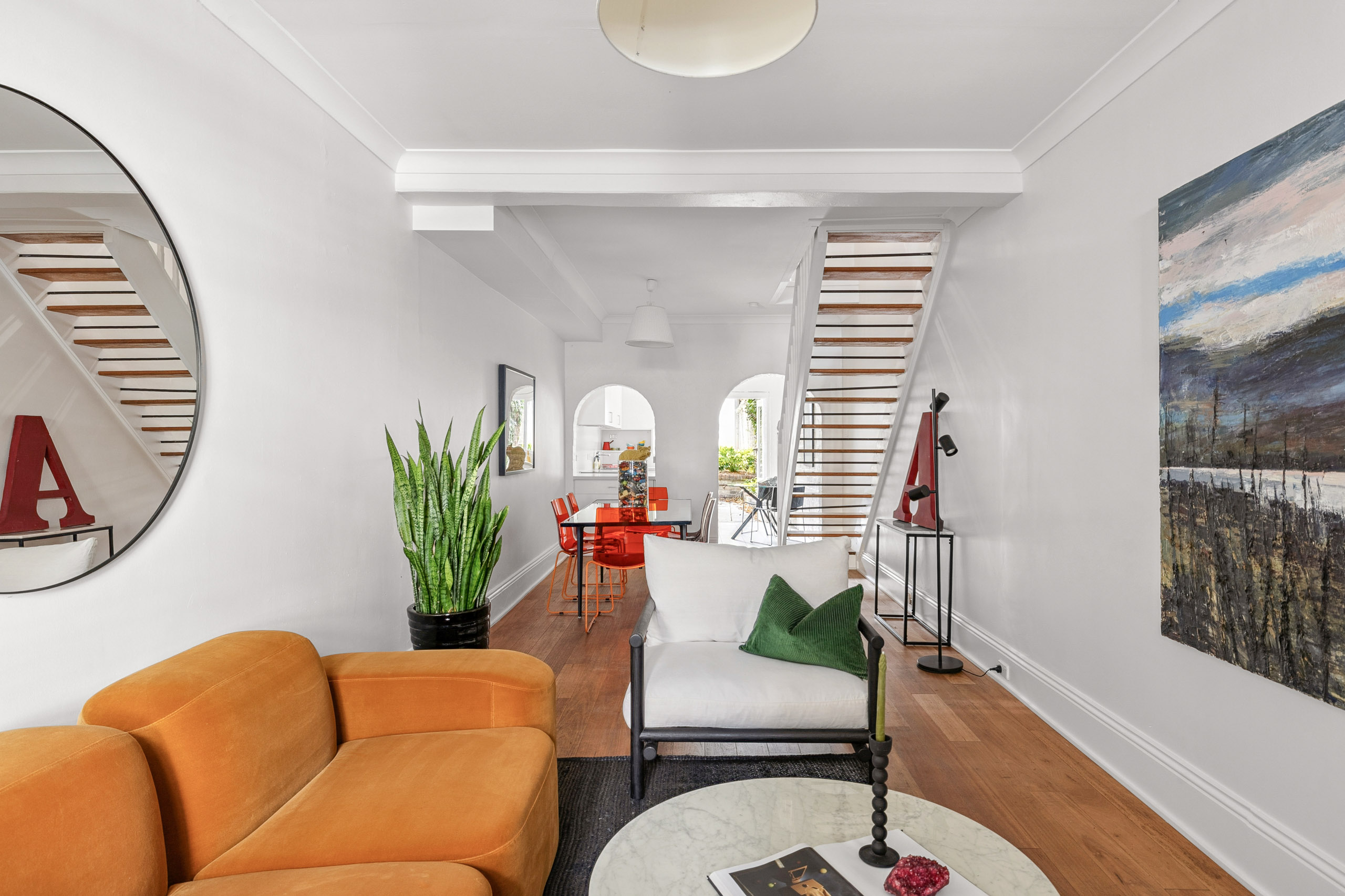 - Timber floors and floating staircase