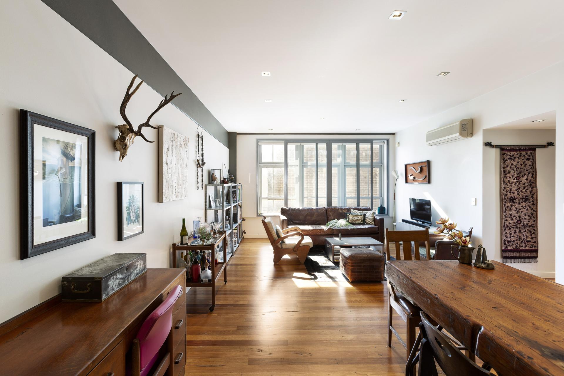With utmost privacy & a NE aspect, this ‘Globe Mills’ warehouse apartment is a unique escape. The living space has no neighbours looking in, & the bedrooms provide peaceful laneway views.