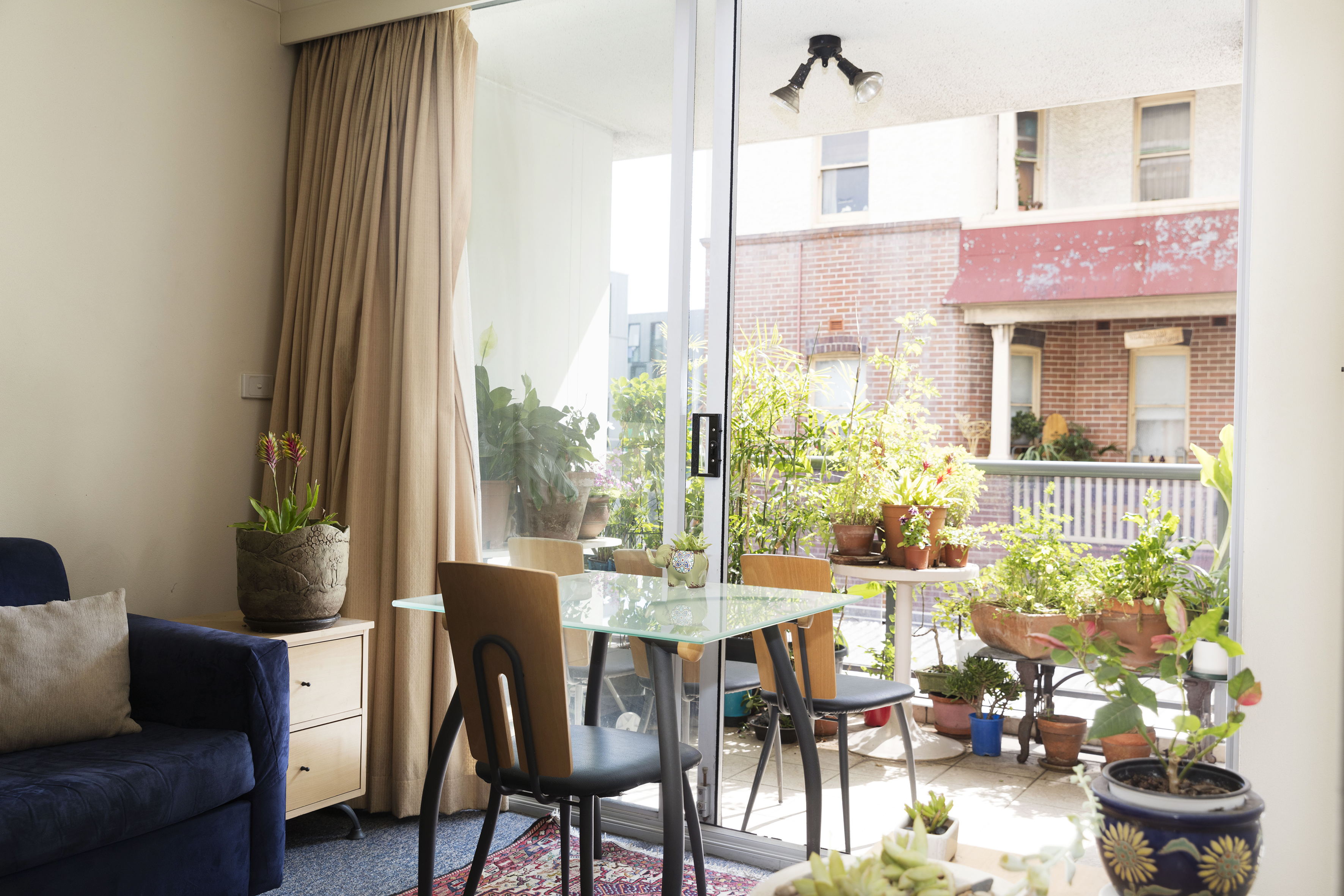 - Covered balc, view to heritage bldg