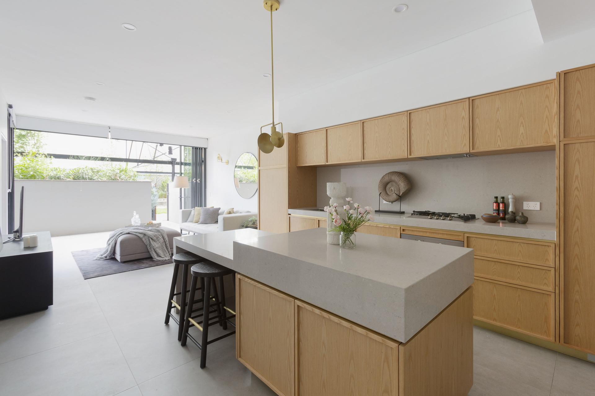 - Stone island dining table, Miele kitchen