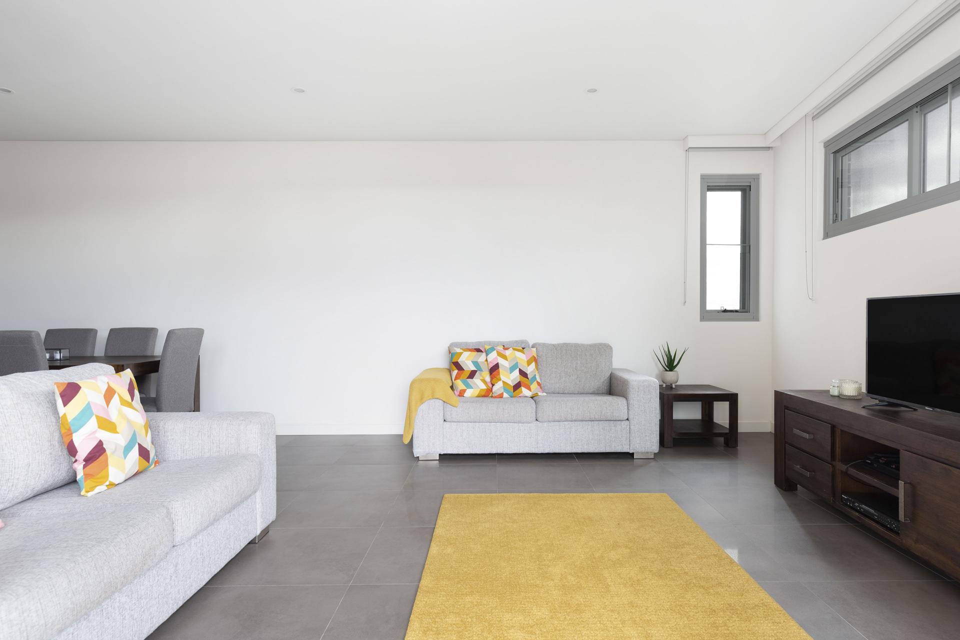 - Spacious open-plan living with tiled floors