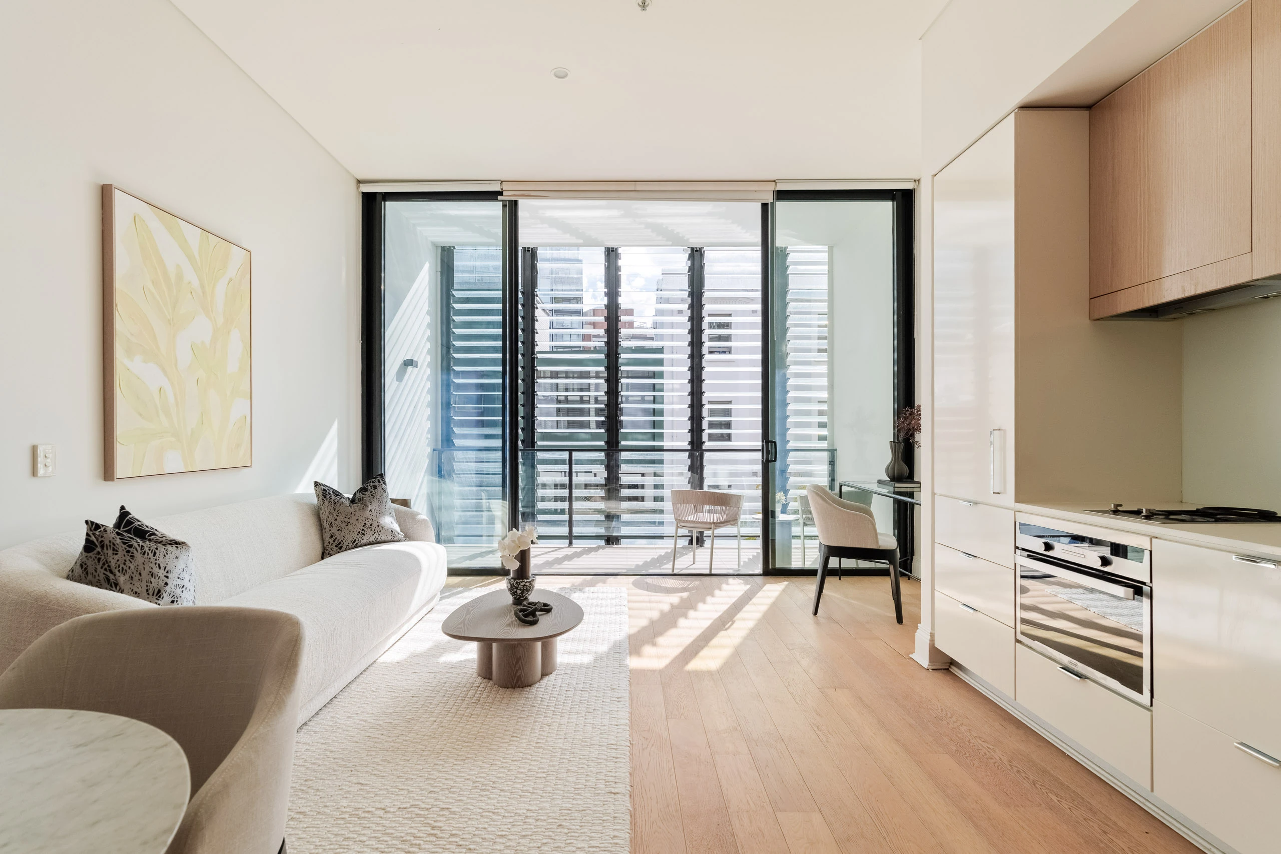 In the refurbished corner landmark ‘The Manor’, this elegant apartment is appointed with as-new finishes of upscale quality and refinement. The warm timber tones and custom joinery create a sense of seamlessness, backed by two layers of wall-to-wall glass overlooking Kellett Street. With everything at your doorstep, it’s a sophisticated city home of outstanding lifestyle and convenience.