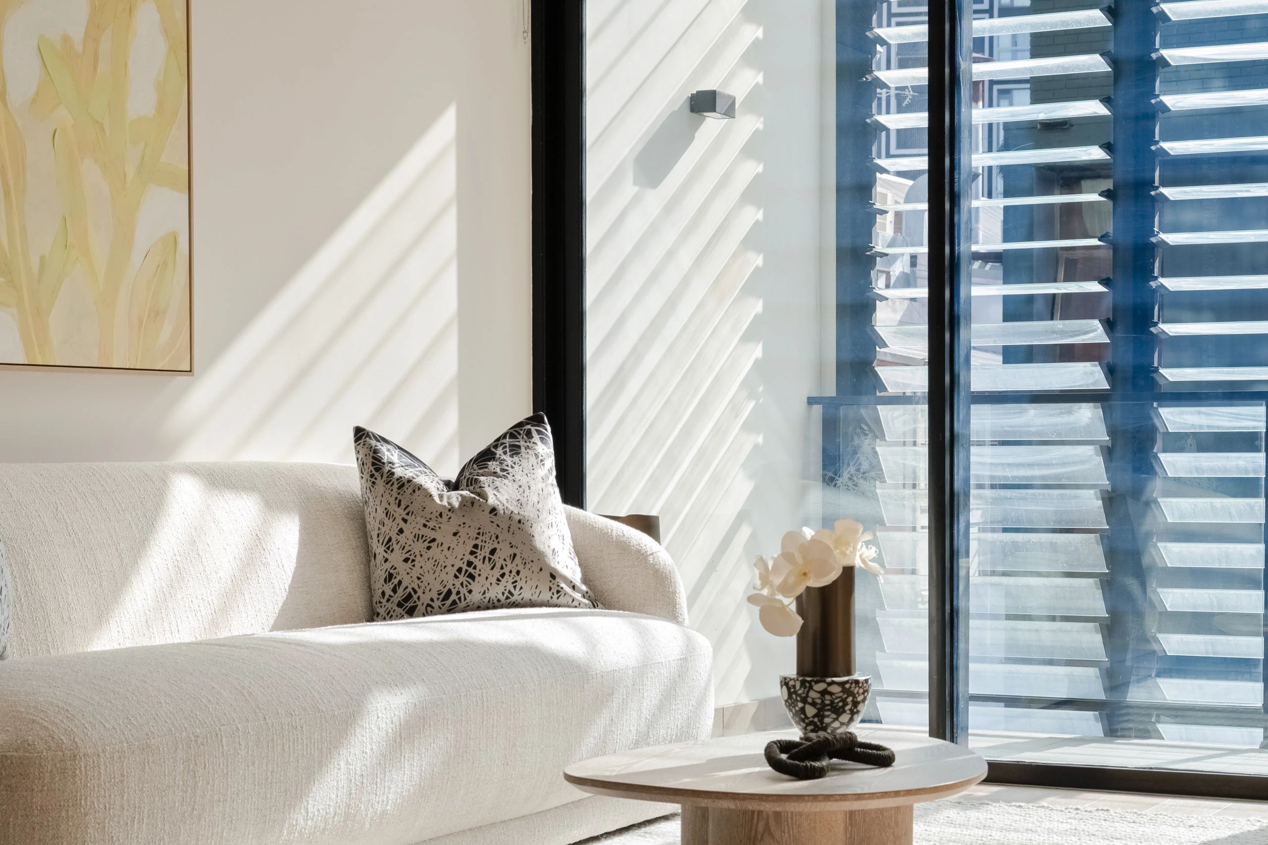 - Full-width balcony with louvre windows