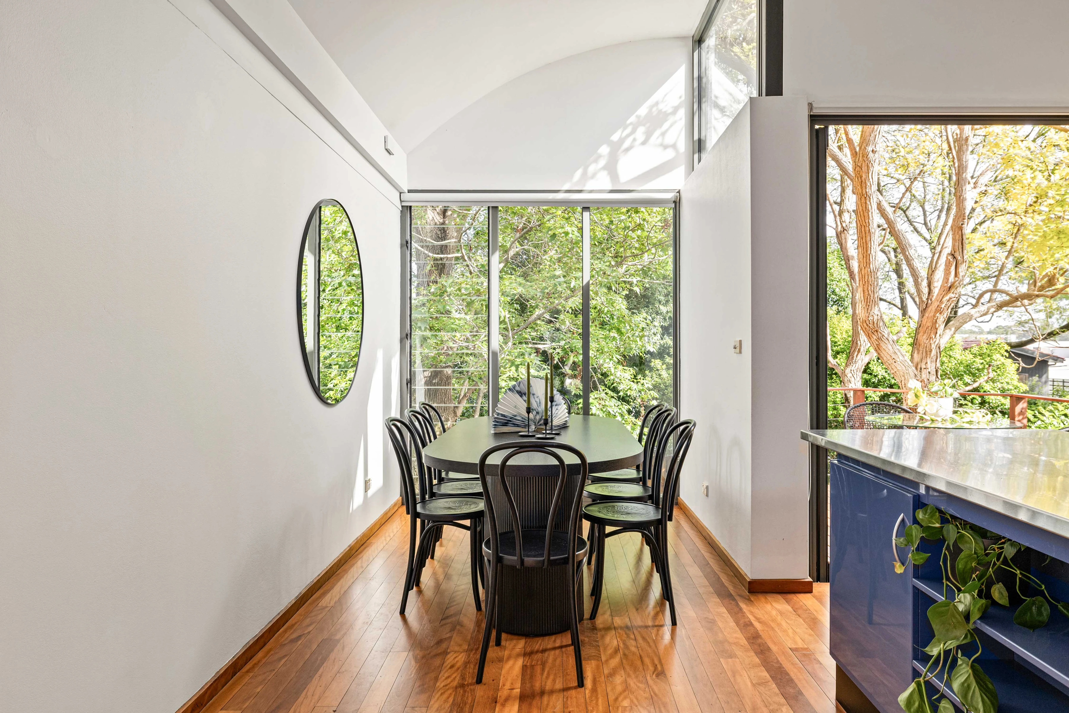 Part of an elegant row of freestanding Victorian residences, this house preserves its beautiful period details upfront and opens out to a sleek open-plan, two-level entertainer at the rear. Both levels connect to outdoor settings and lush green backdrops that deliver a treehouse-like ambience and sense of escape in the heart of Inner Sydney. Enviably situated in one of the area’s best positions: a wide and peaceful tree-lined street close to Johnston St and Booth St village hubs, Annandale Public School and city transport.