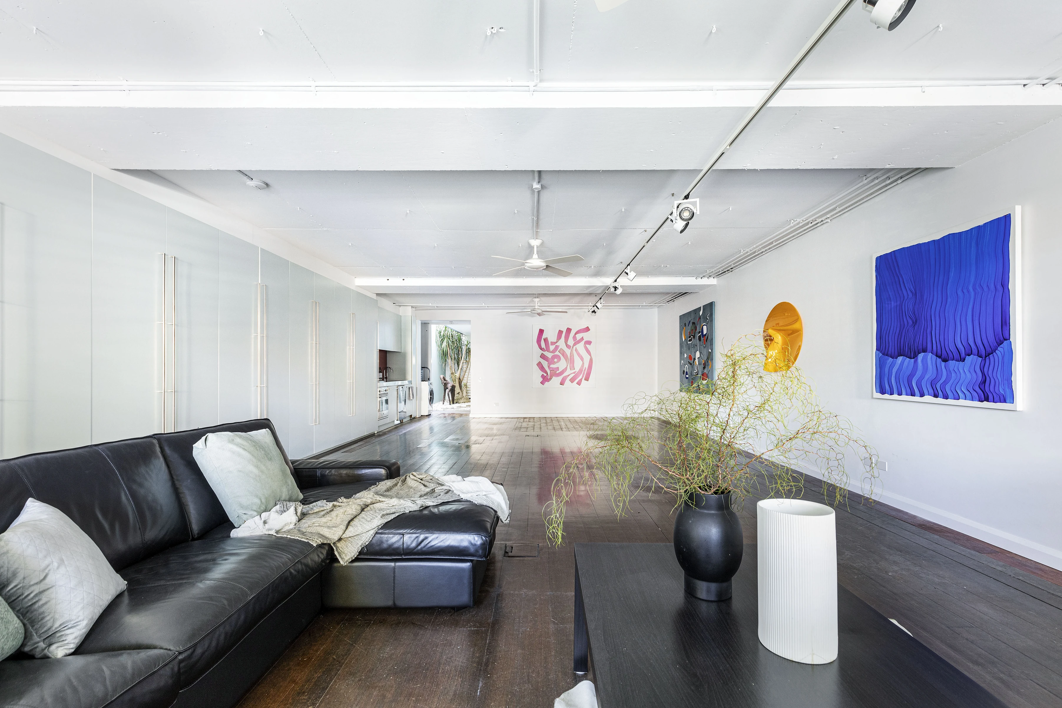 - Vast open plan, wood floors, custom joinery
