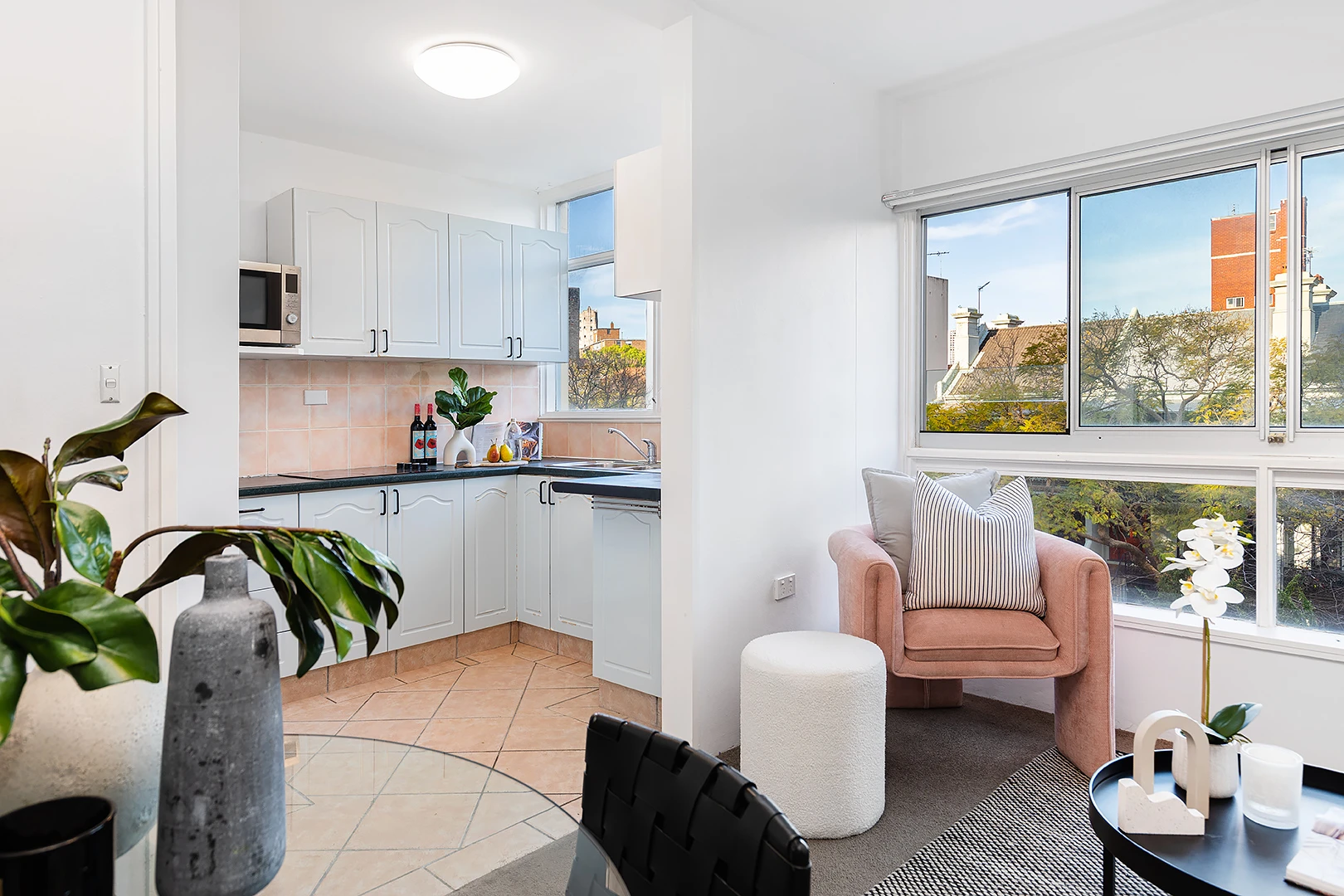 Tranquil treescape vistas, sunny NE aspect and parkside location combine in this one-bedroom apartment to deliver an idyllic home in one of Sydney's most convenient bayside suburbs between vibrant Potts Point village and the harbour foreshore. With a car space in the grounds, the apartment is on Level 2 of The Tor security building with a lift, upgraded lobby and popular Shuk Café at the doorstep. Wall-to-wall windows bring sunshine and loads of natural light into the crisp white interiors with a modern kitchen, updated bathroom and open-plan living/dining area with space for a work-at-home desk. Ideally situated just 150m to harbourside Rushcutters Bay Park, the building has a rear entrance to Barncleuth Square for a short 200m walk to Macleay Street's cafes, shopping, buses and 450m stroll to Kings Cross train station.