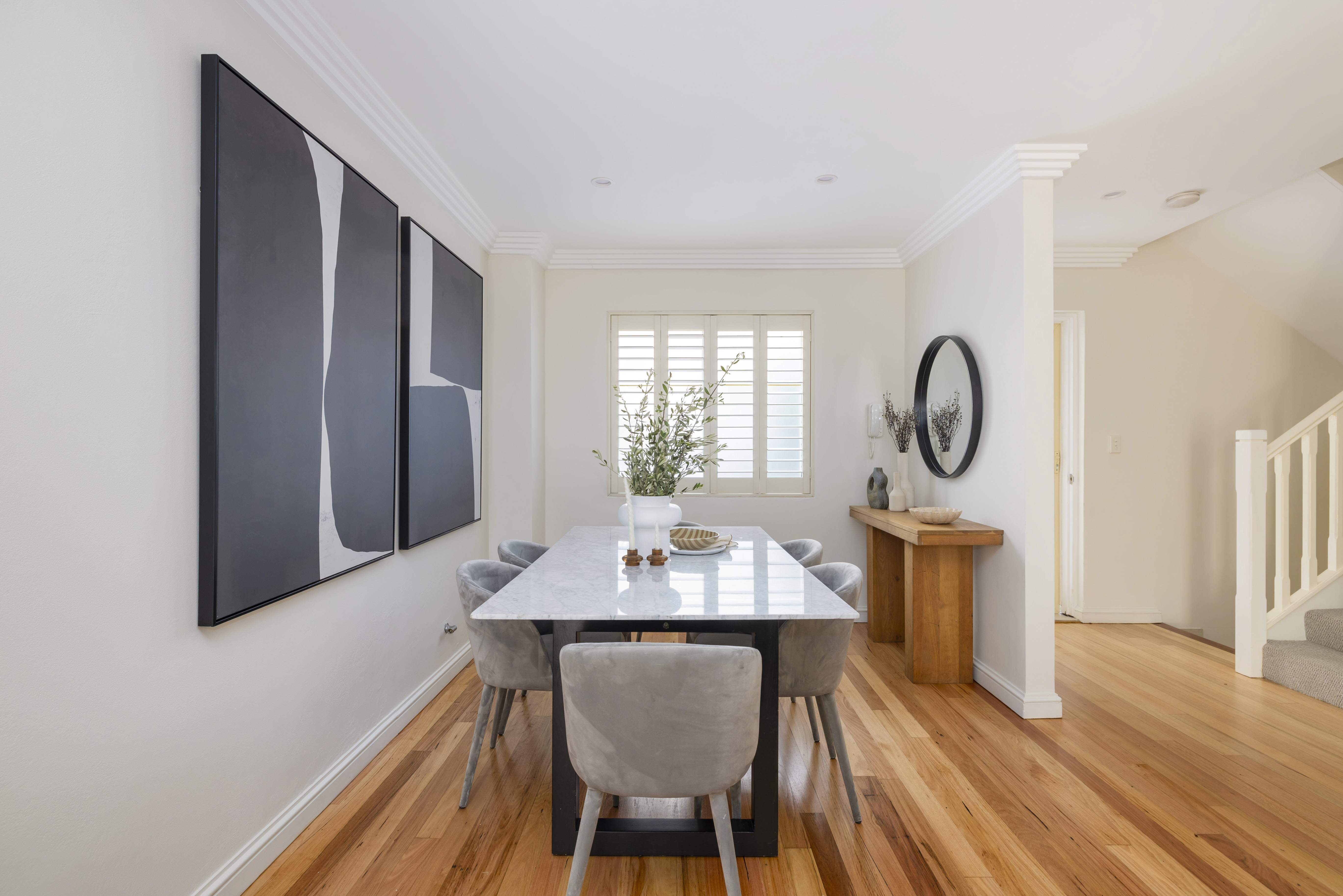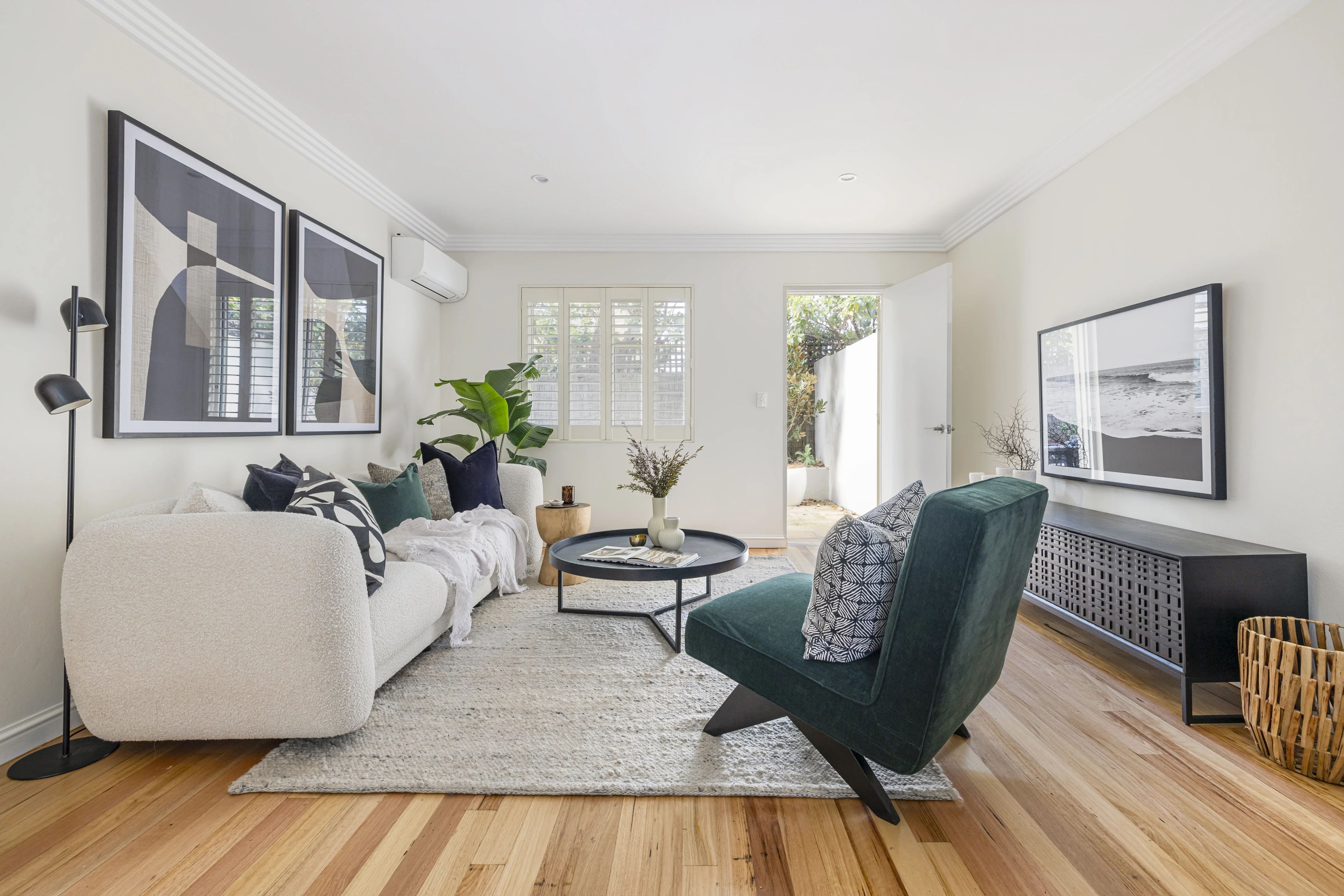 - Open living/dining with polished floorboards