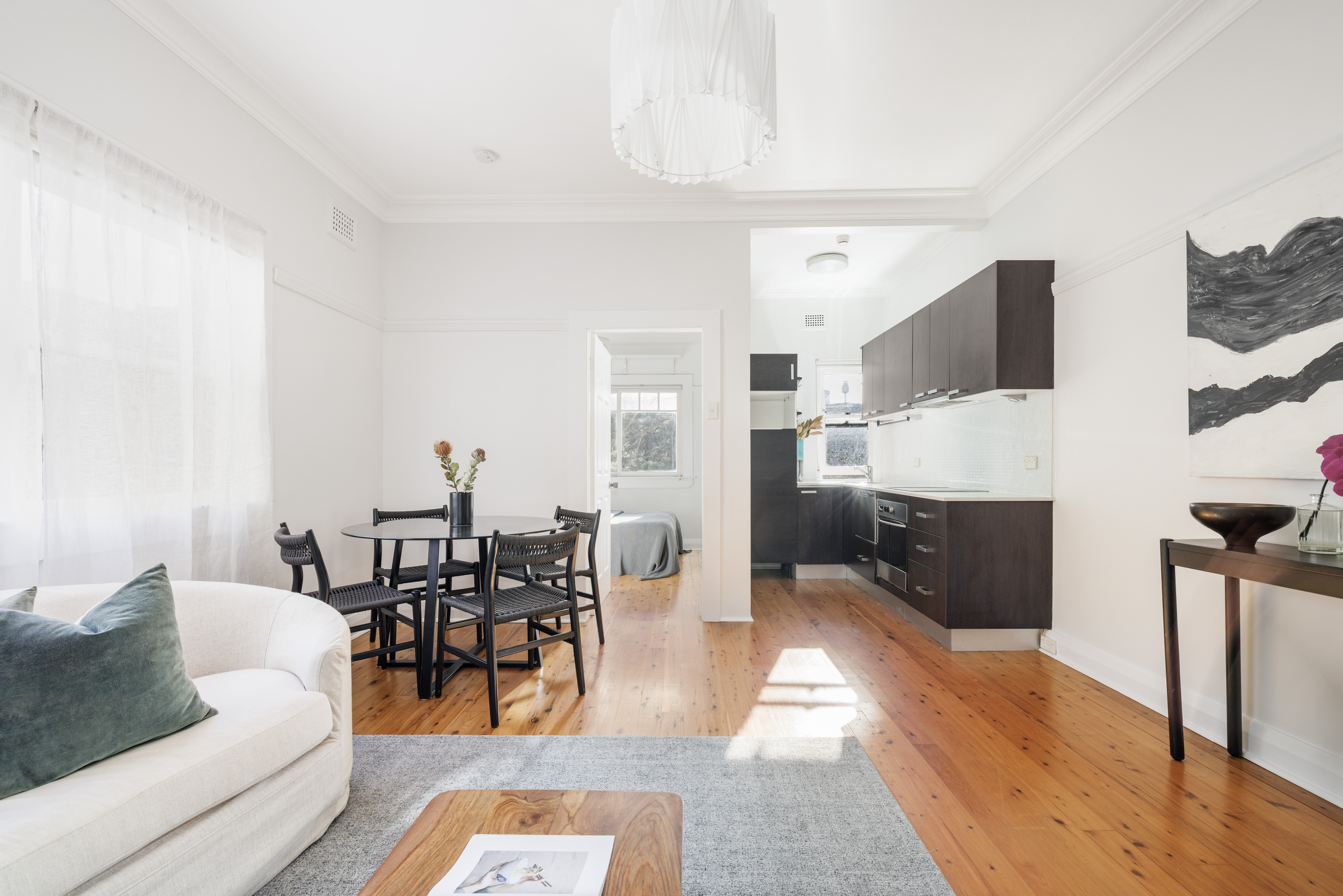 A top-floor Art Deco home with city views in a parkside position, this residence is a beautifully presented period home in a boutique security building of just 12. With contemporary touches alongside classic detail, it’s a short stroll to Rushcutters Bay Park and Edgecliff shops in a leafy city-fringe pocket of Paddo. Free Strata Report at bw.com.au
