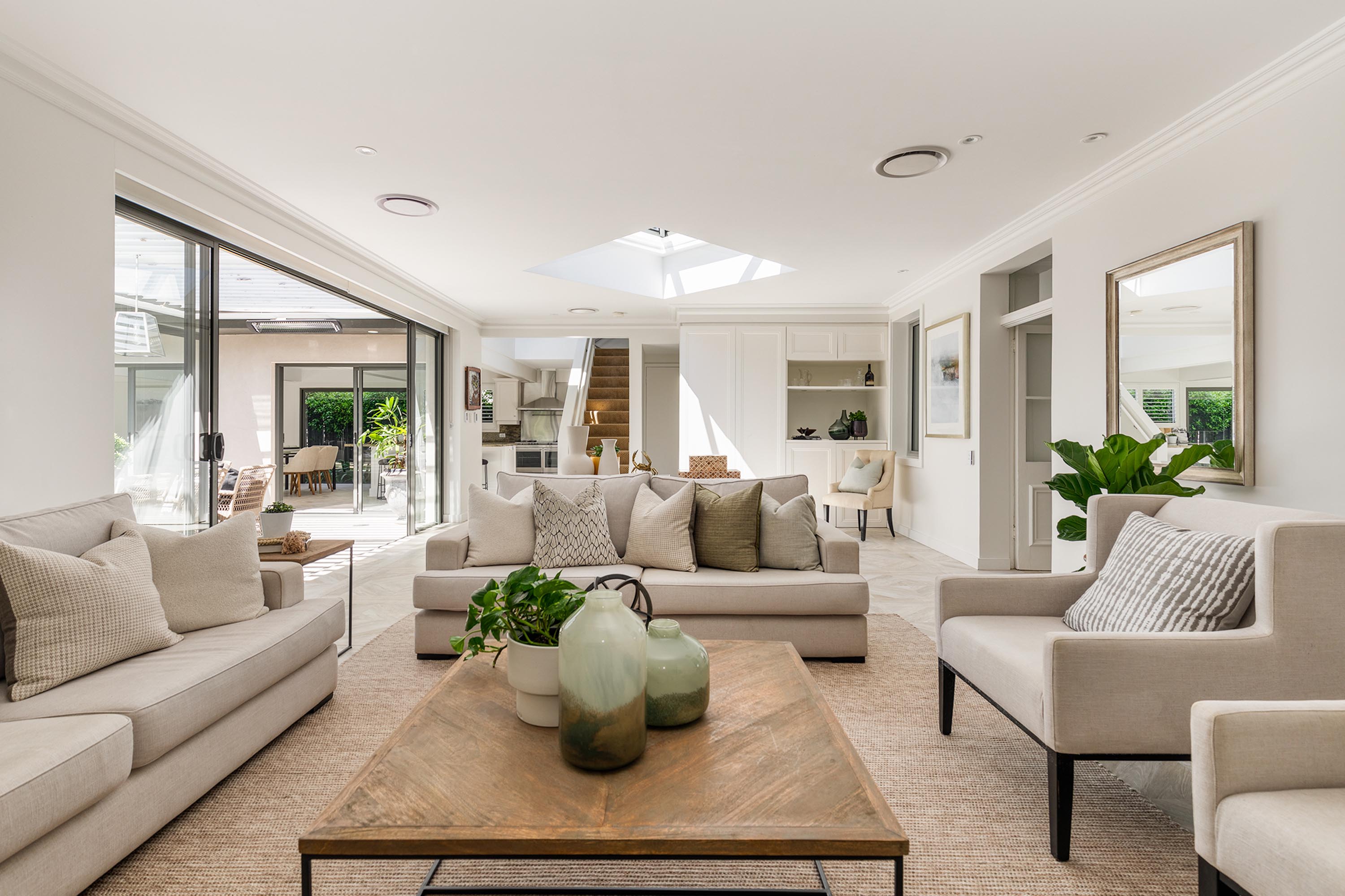 - Formal + casual living, indoor/outdoor flow