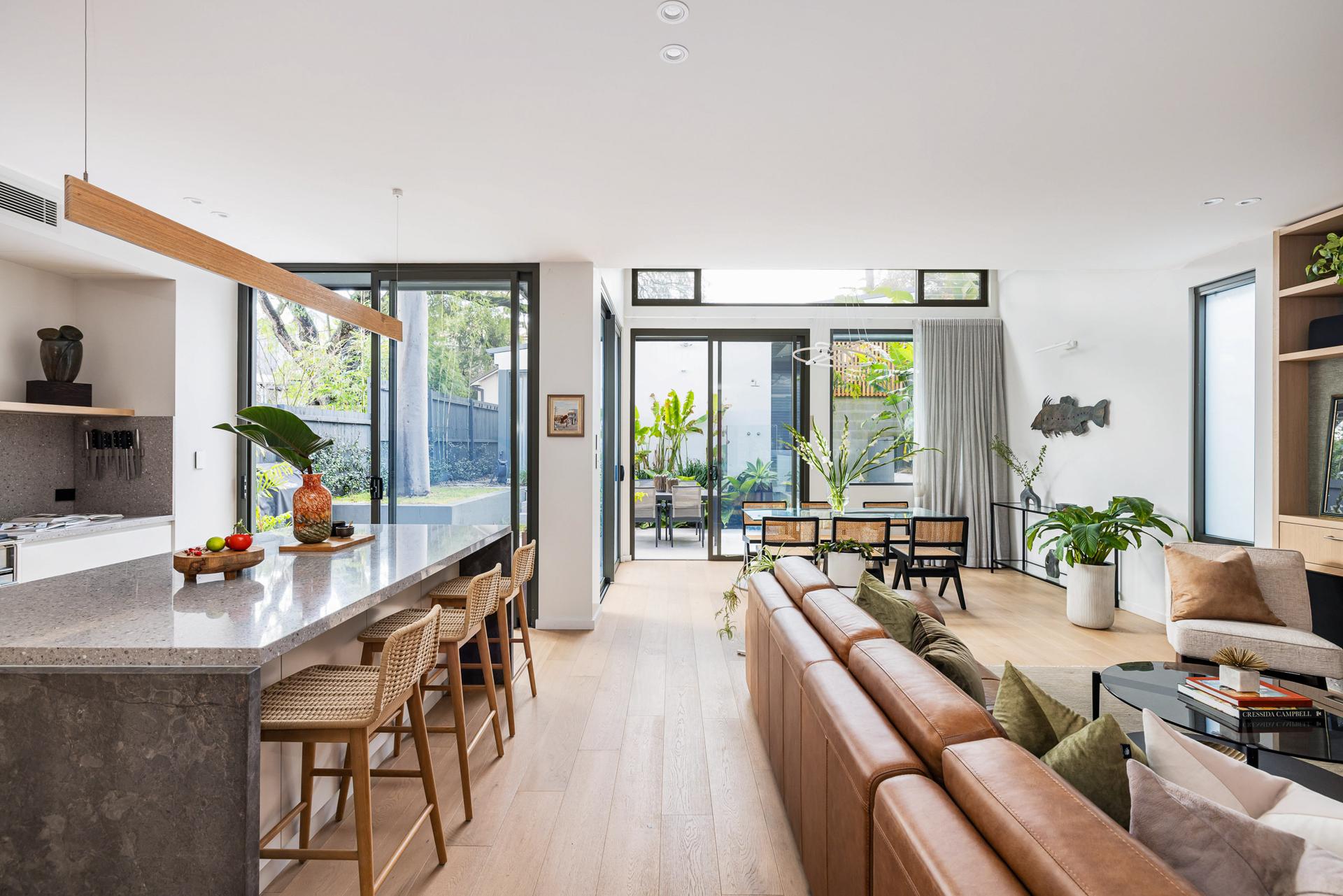 - Oak floorboards, oversized sliders, north light