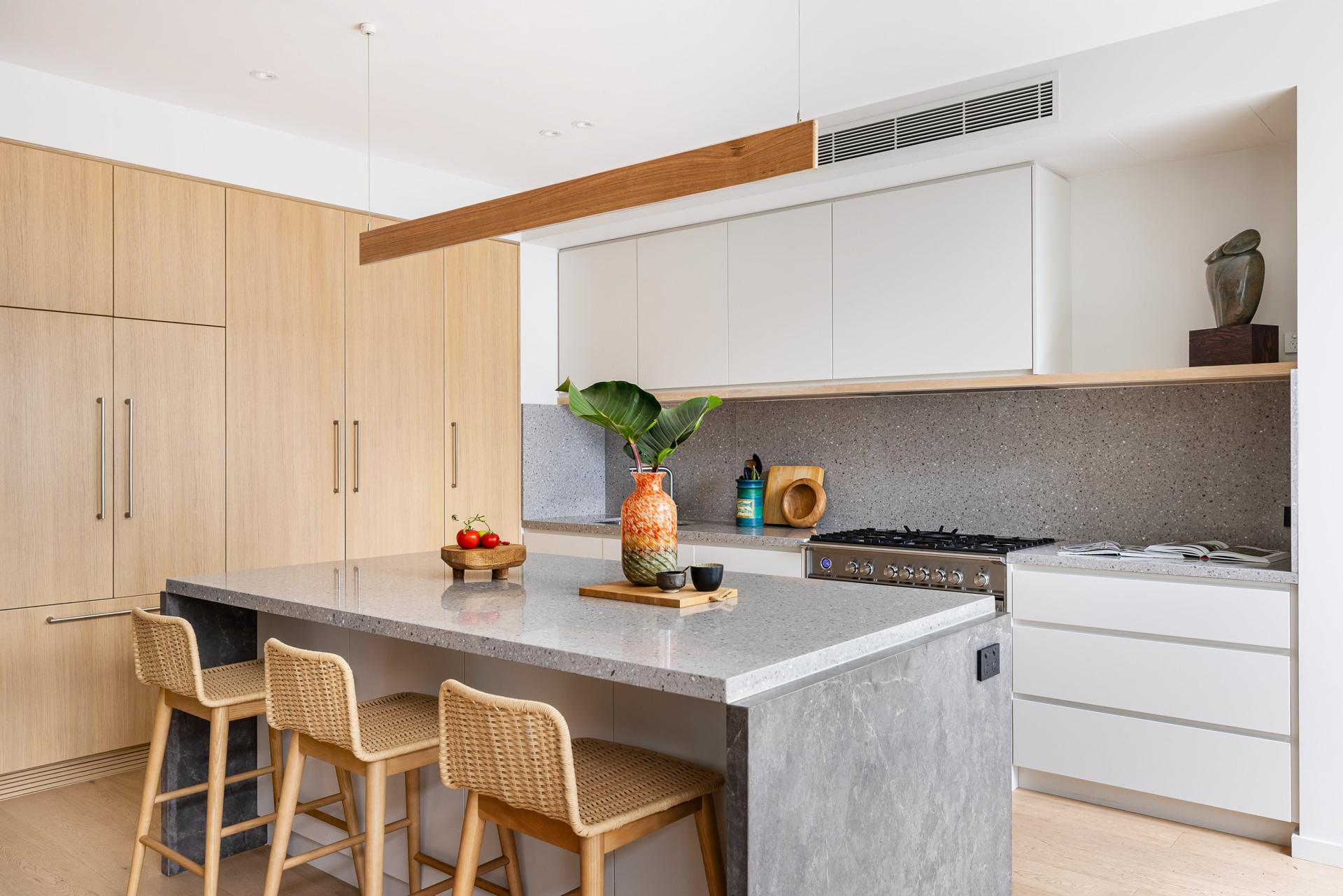 - Stone kitchen with bar fridge and dishwasher