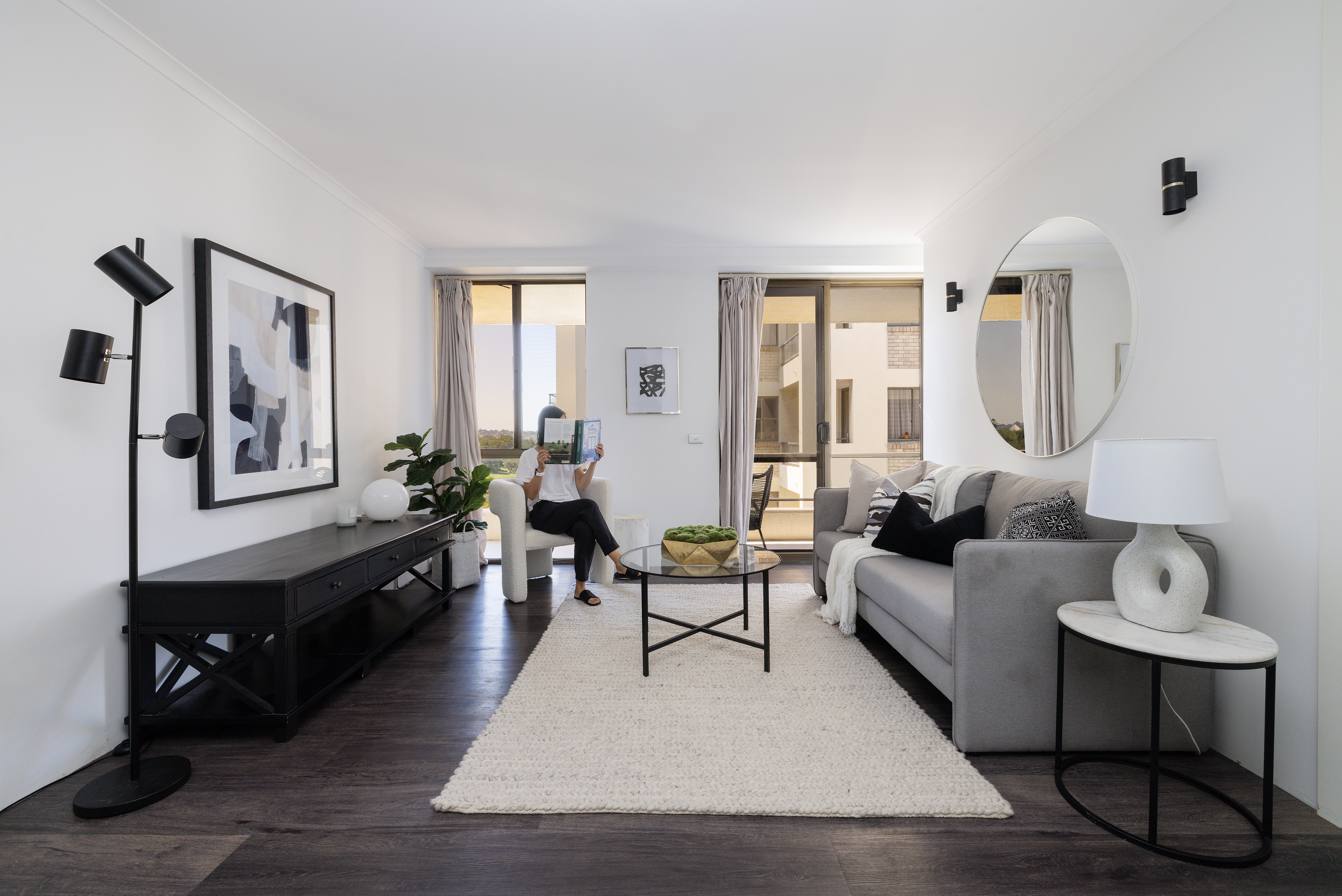 - Full-width balcony off living and bedroom