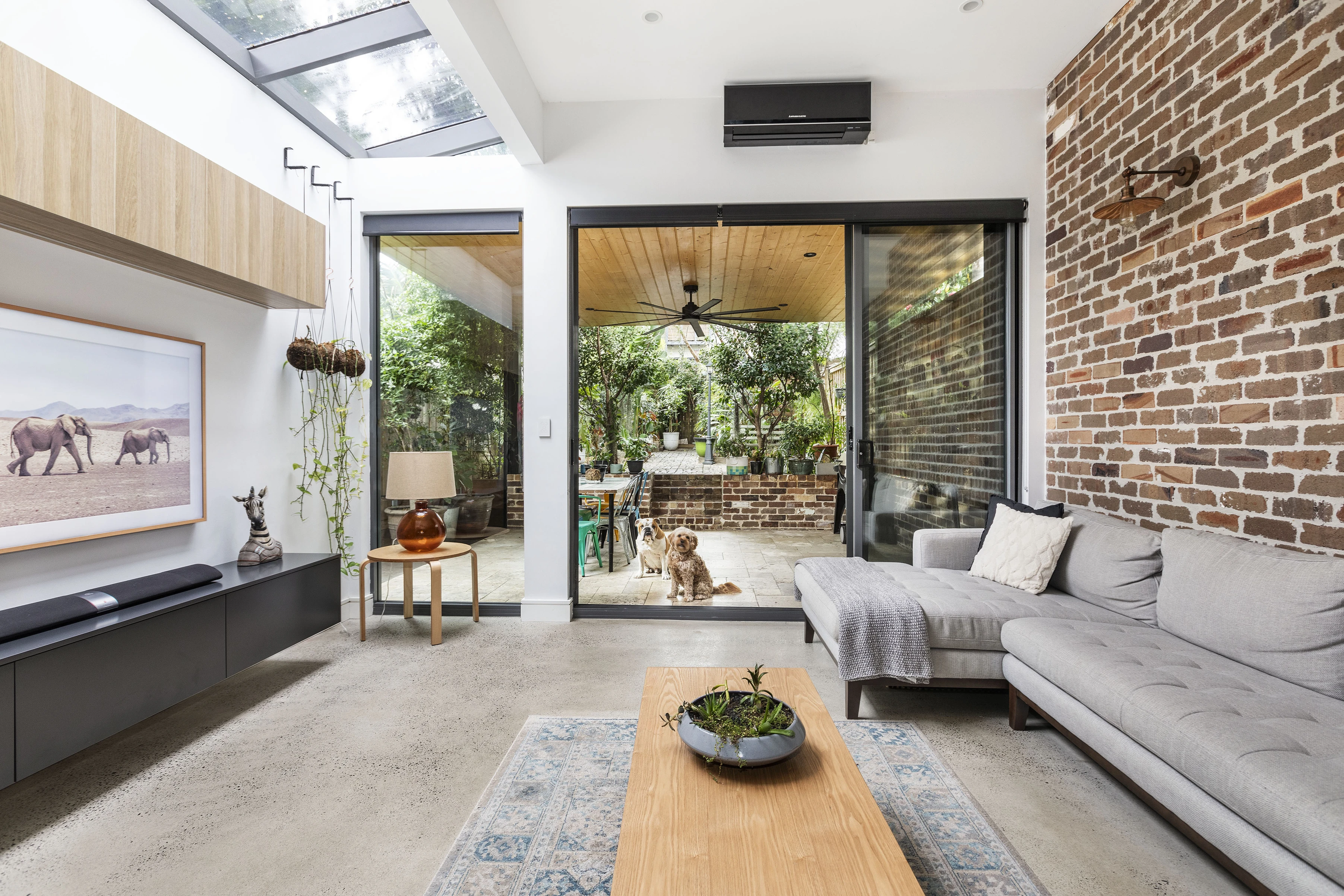 - Sky-lit living, connected alfresco area