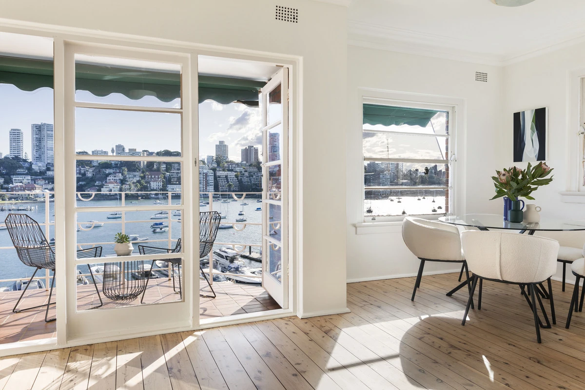 Holding the top-floor position in an absolute waterfront Art Deco strata building, this residence is in one of the East's best lifestyle spots, just metres to Redleaf Pool and the shores of Double Bay Beach. With impressive water views all round, it overlooks the marina and surrounding boat moorings, for an every-changing outlook from sunrise to sunset. Hugging the shoreline, the building’s established gardens offer city views and more, delivering the ultimate Sydney Harbour experience.