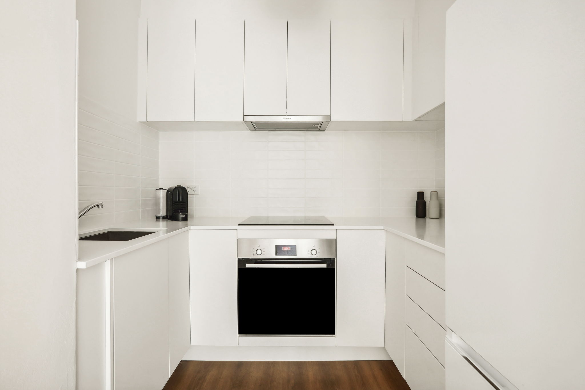 - Updated modern kitchen with stone benches and sleek joinery