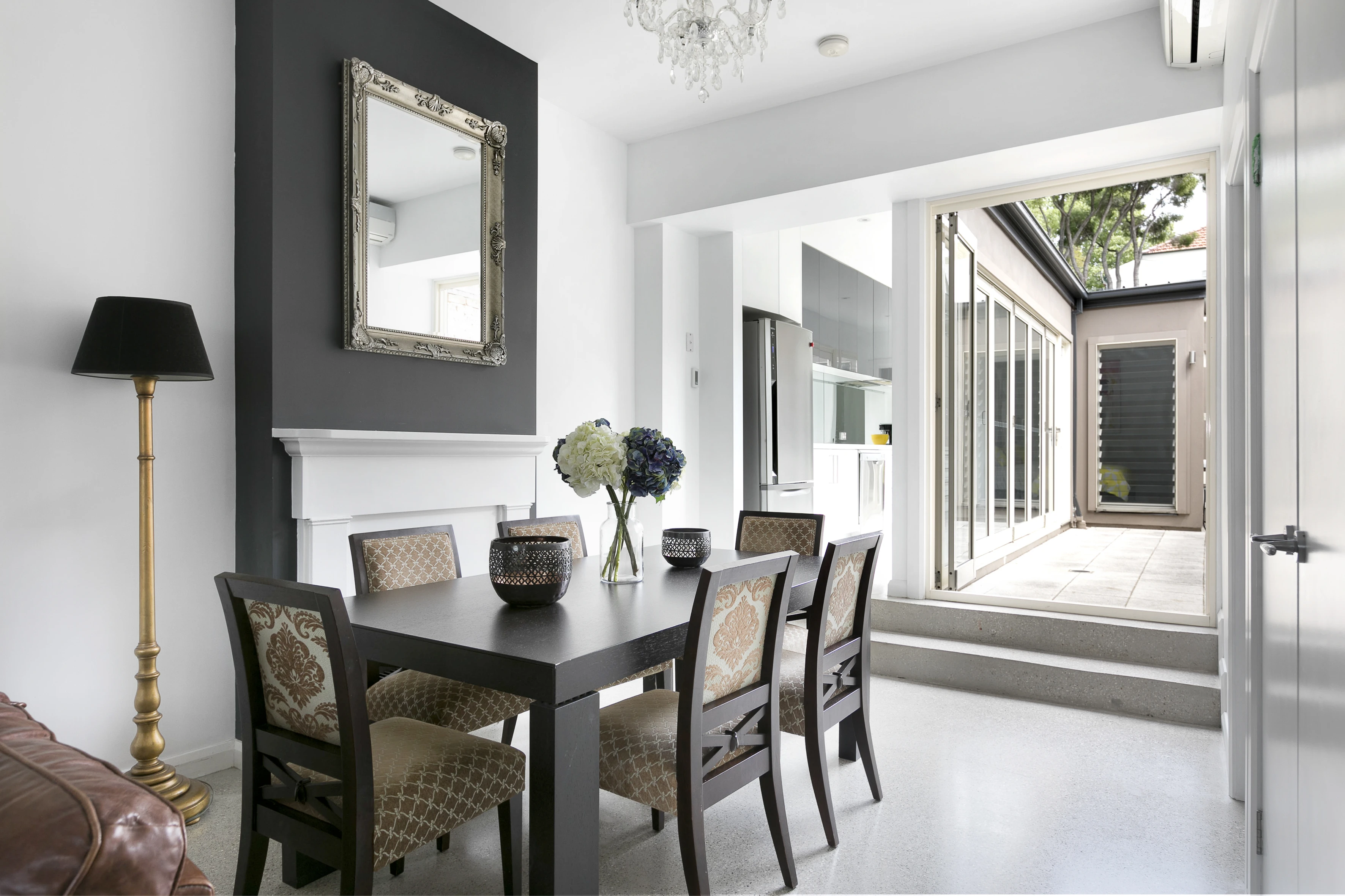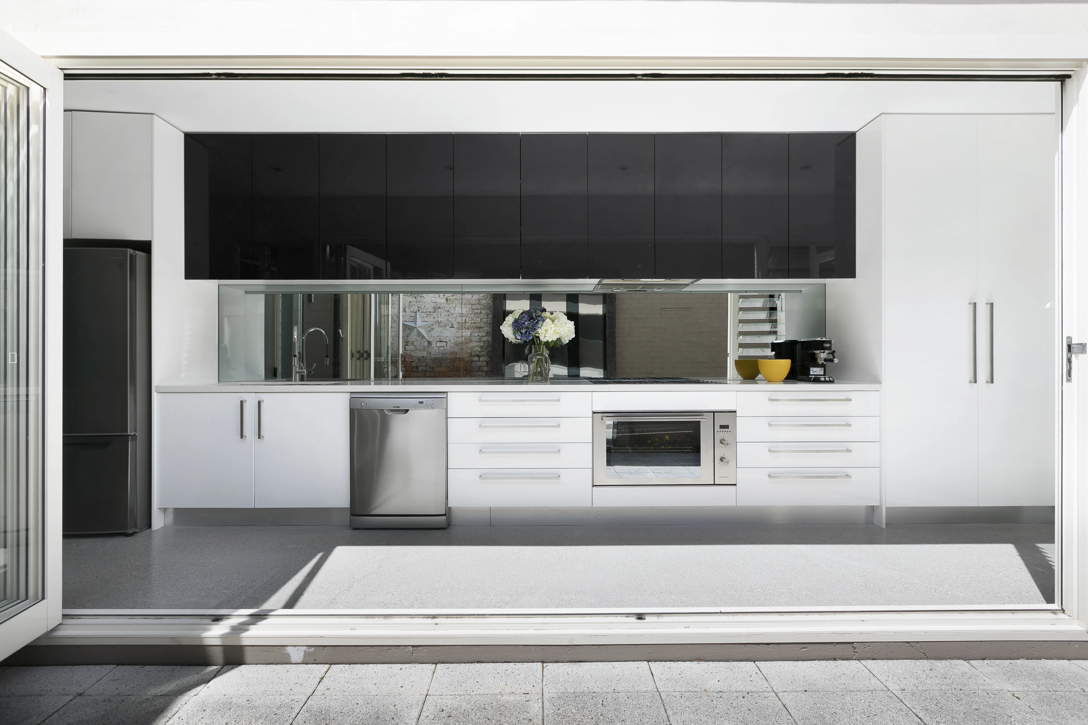 - Open living, in-out flow, folding glass