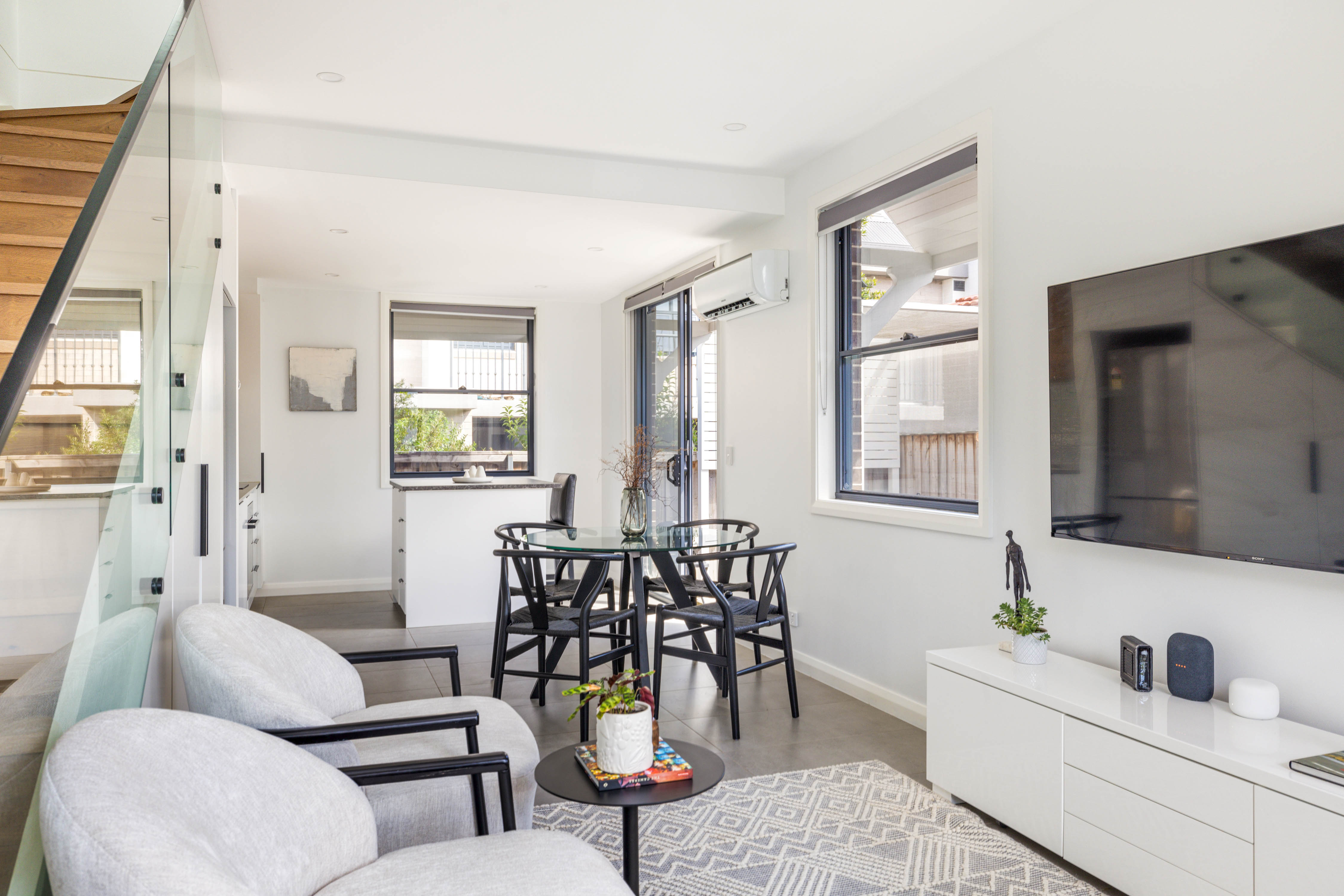 - Open-plan living, seamless in/outdoor flow