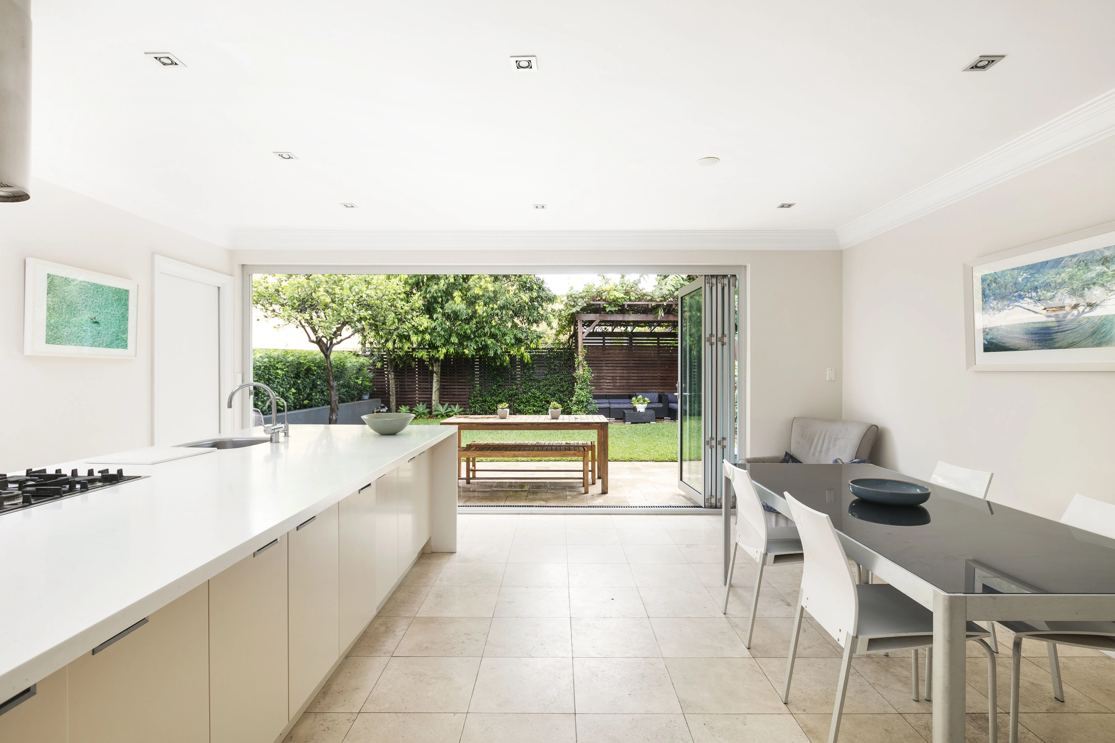 - Indoor-out living, stone tiles in & out