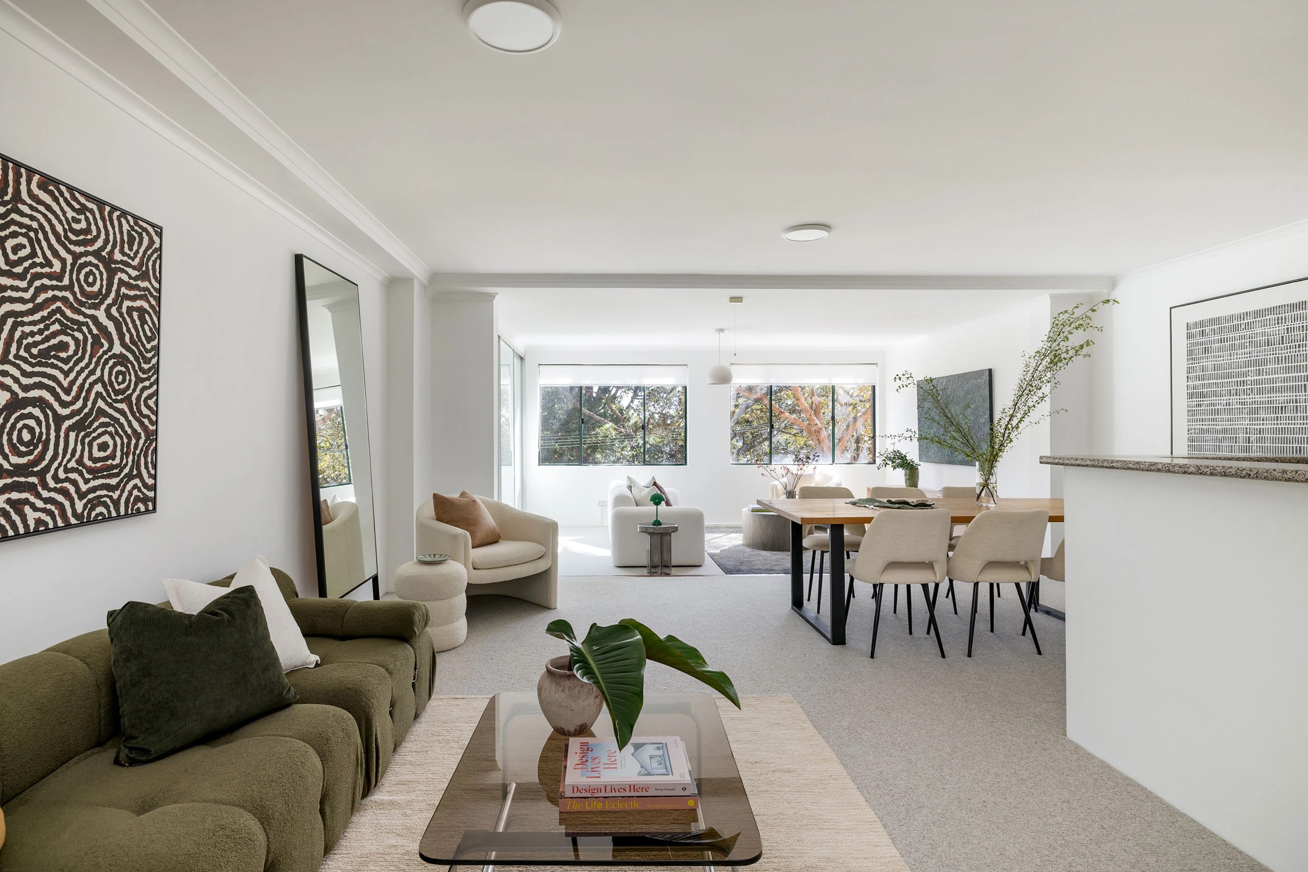 - Full-width windows of greenery