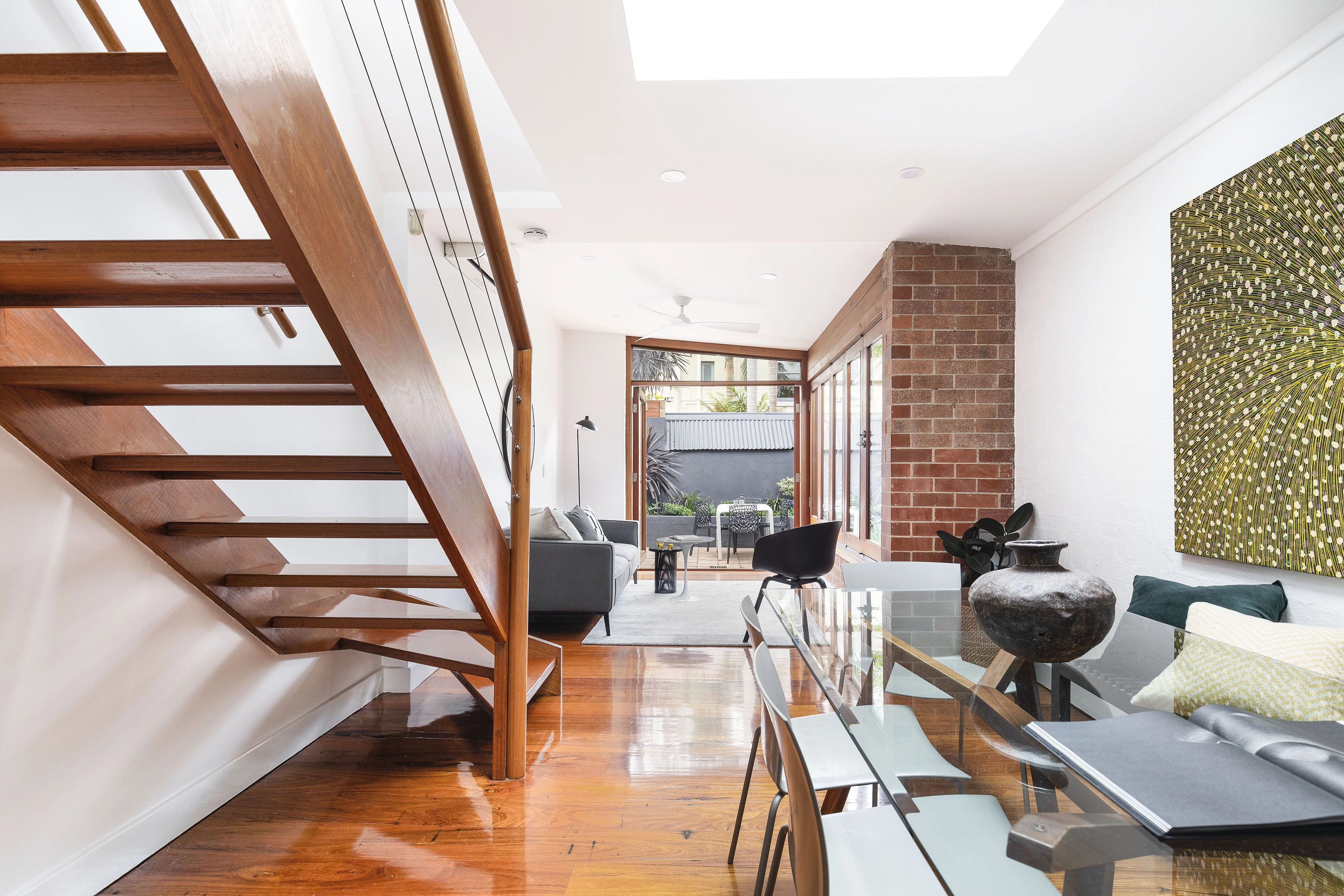 - Polished floors, floating stairs, skylight