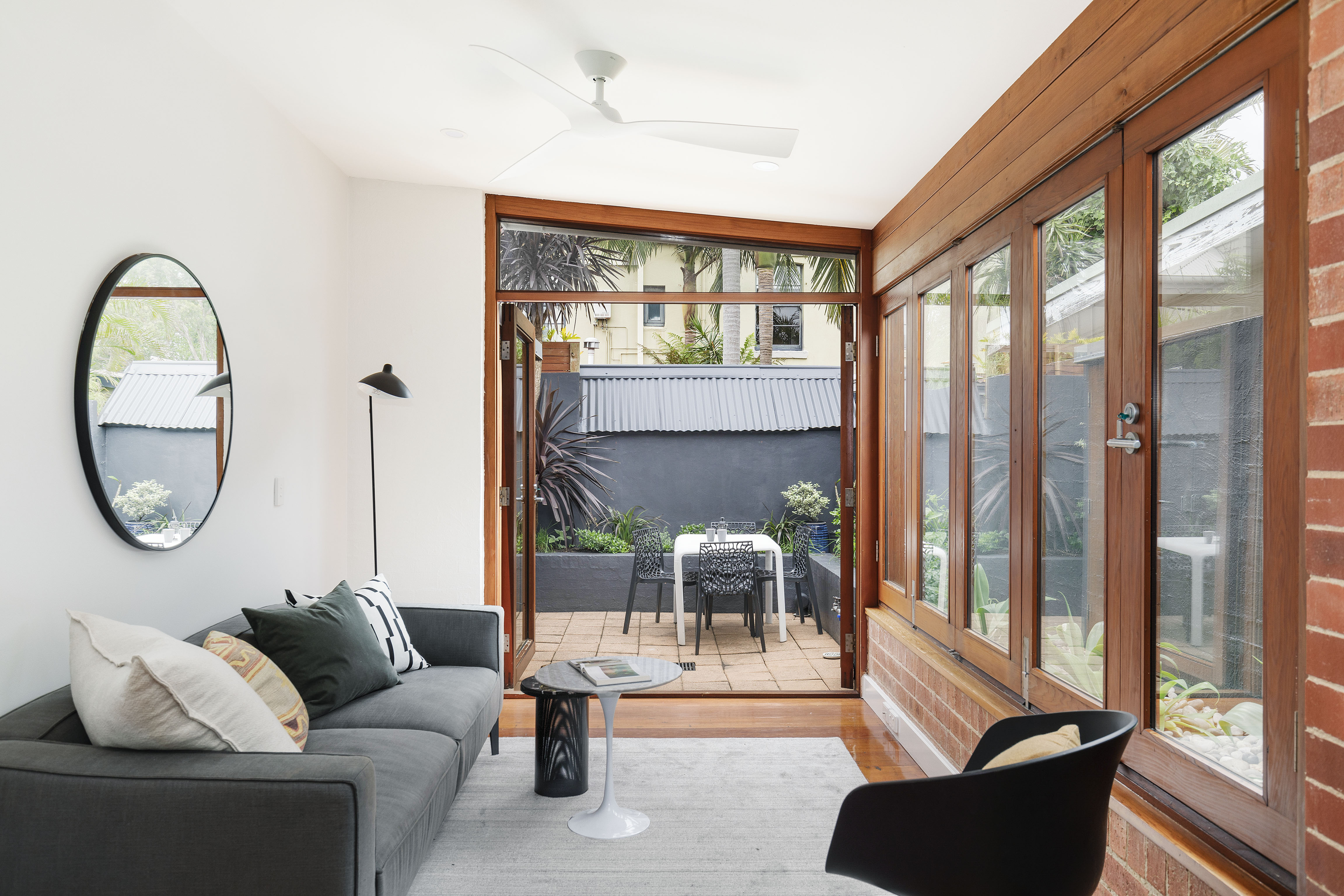 A courtyard residence with big views of the CBD, this immaculate terrace is set in a tightly-held peninsula location. In a quiet street, it's moments from transport and Darling Street retail.