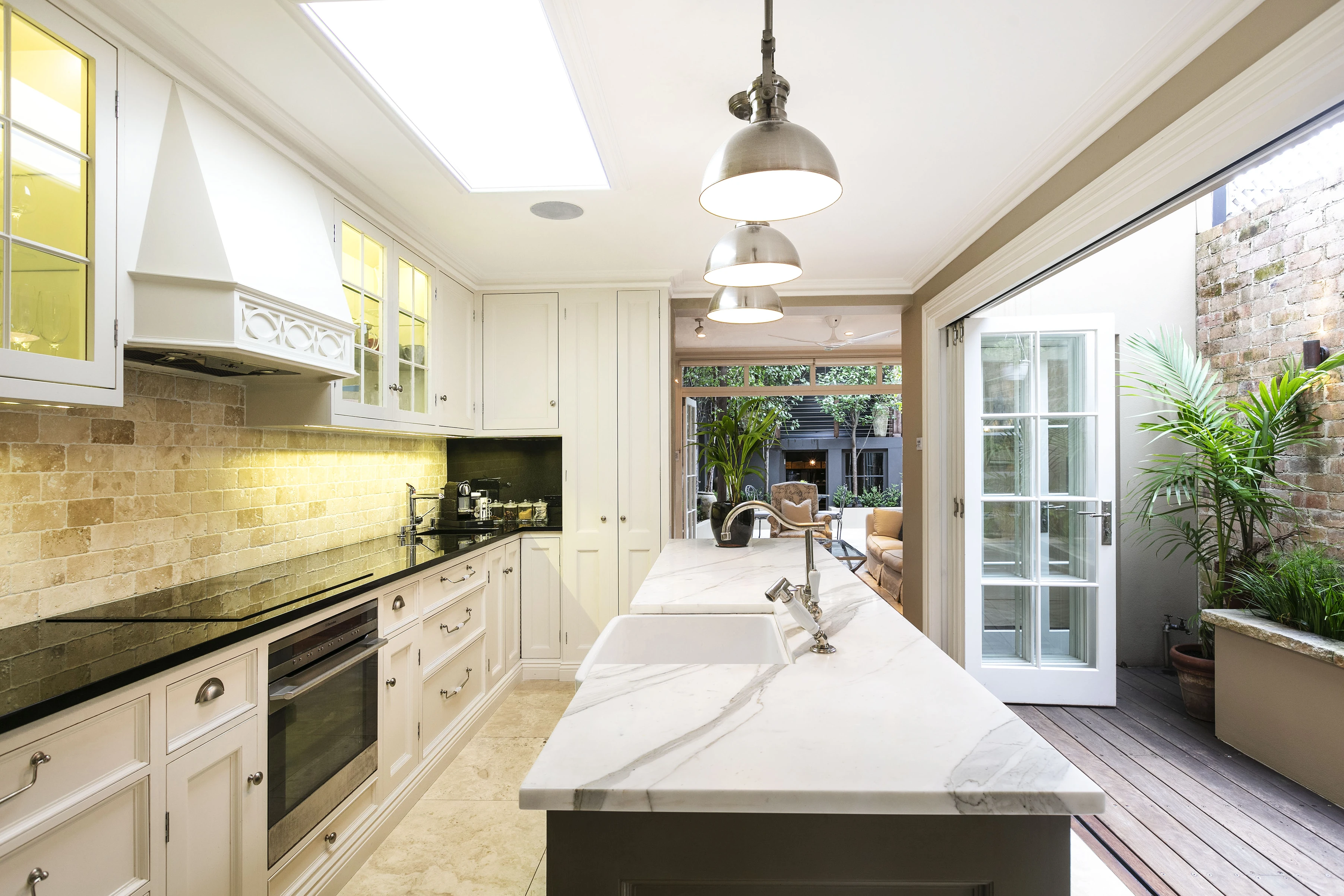 From the marble farmhouse kitchen to the outdoor entertaining pavilion, every inch of this terrace has been reimagined, bringing smart hidden features & high-spec finishes for sophisticated living with classic European elegance.