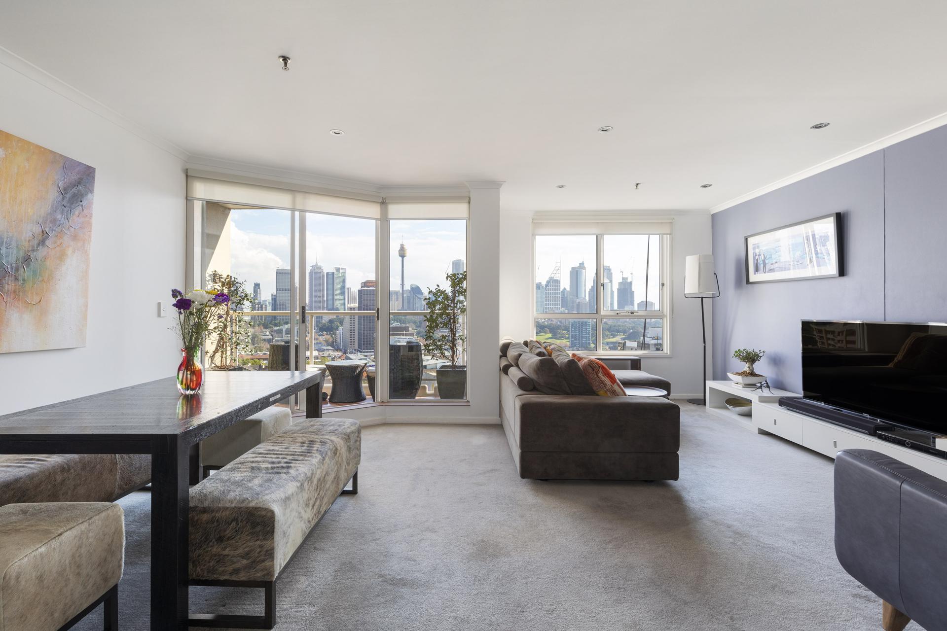 In a landmark building between the CBD and the harbourfront, enjoy views of the Harbour Bridge & Domain. The concierge, resort facilities and secure parking add to the glamour of high-rise city living.