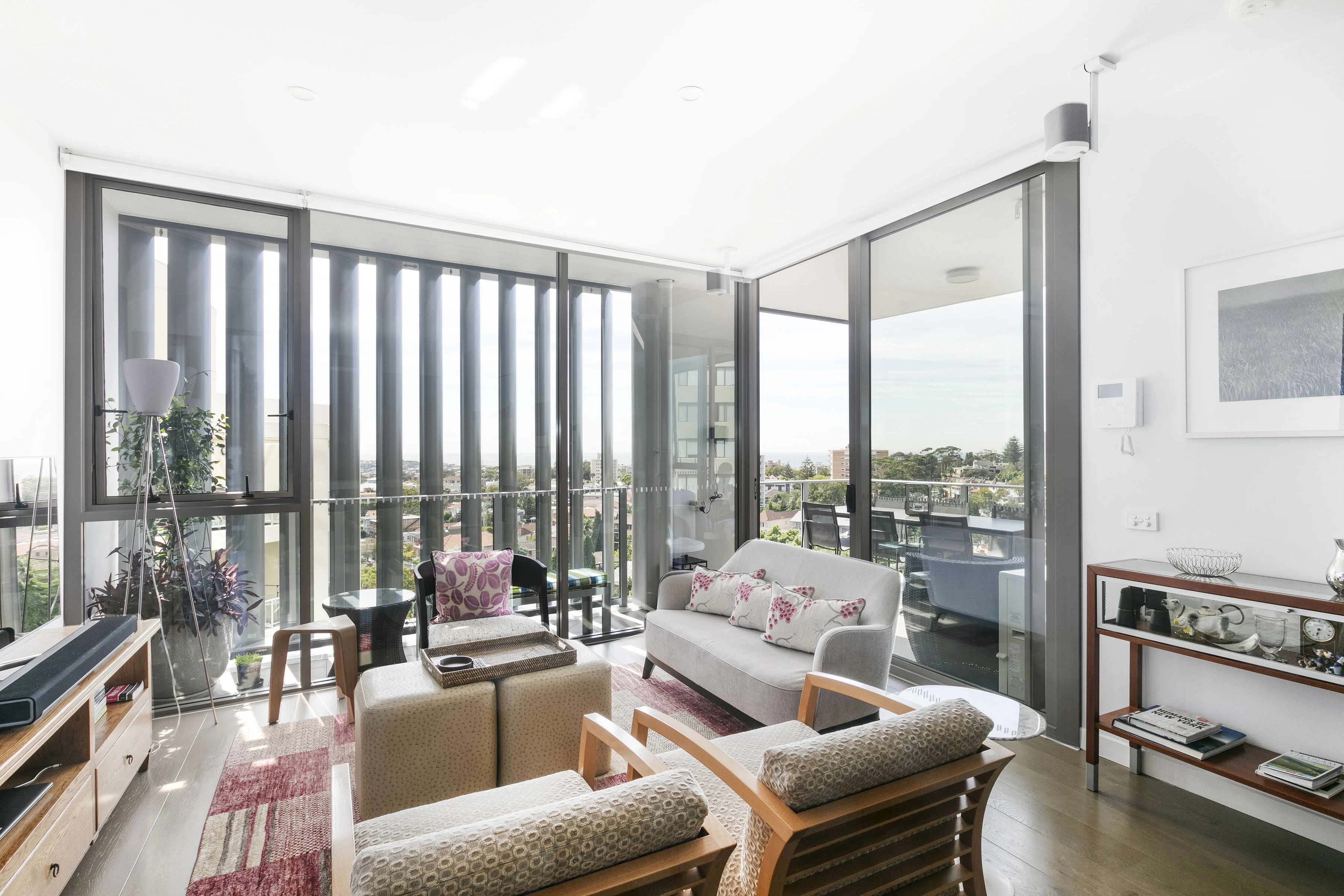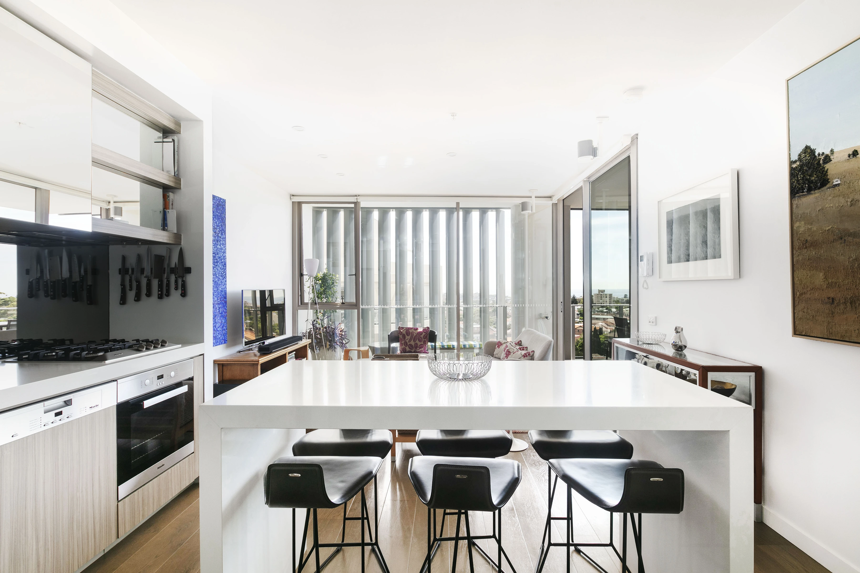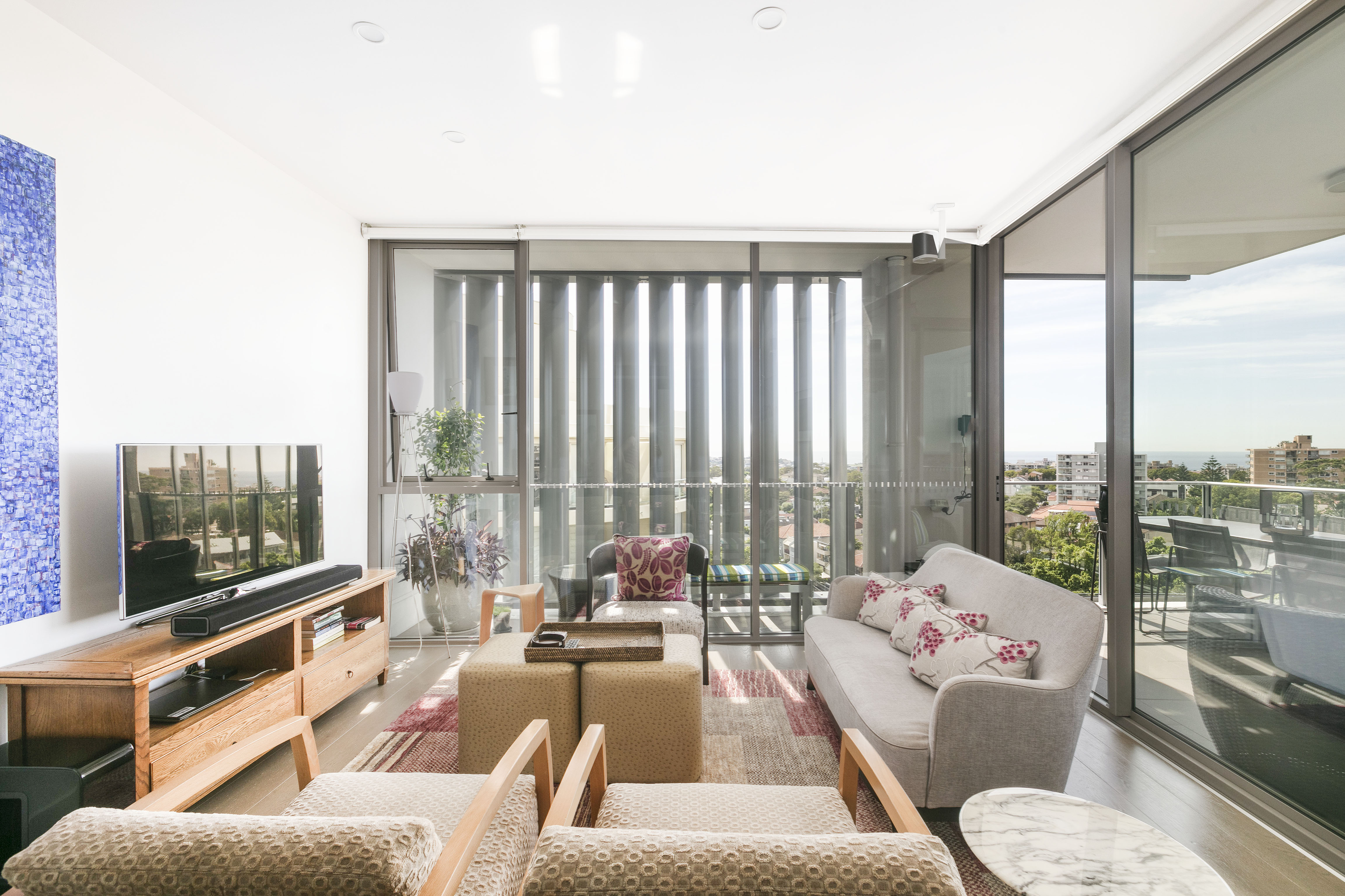 In the admired ‘Capitol’ building, enjoy high-end, like-new finishes and full-wall glass with long ocean views. Westfield and the train station are on your doorstep, but from up here you wouldn’t know it.