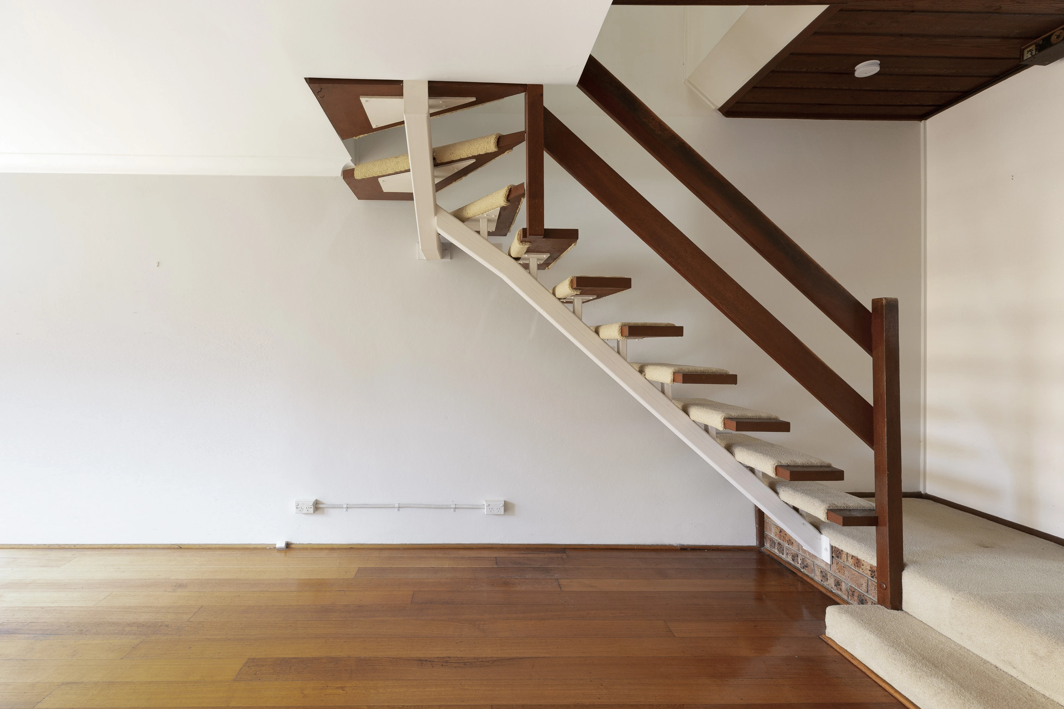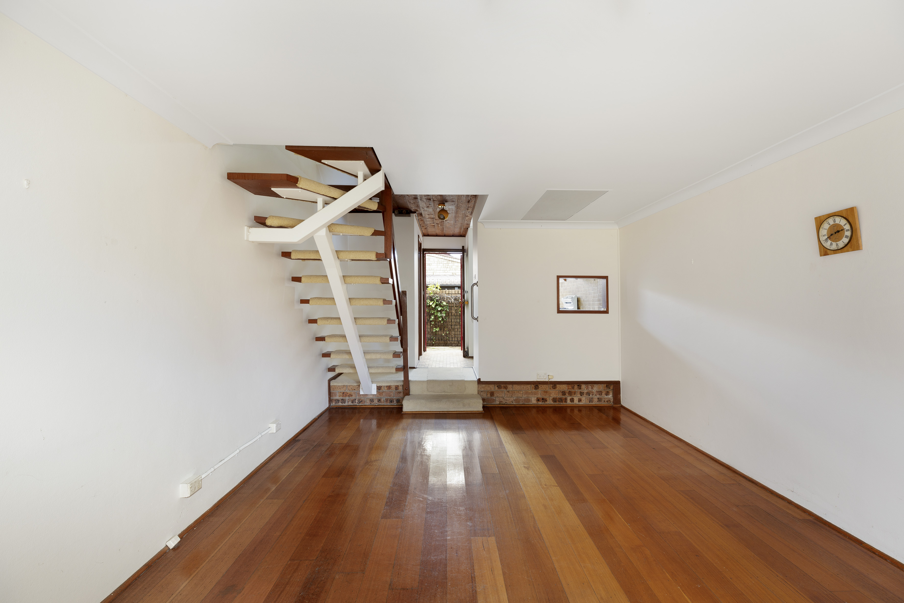 - Open living, floorboards, floating stairs