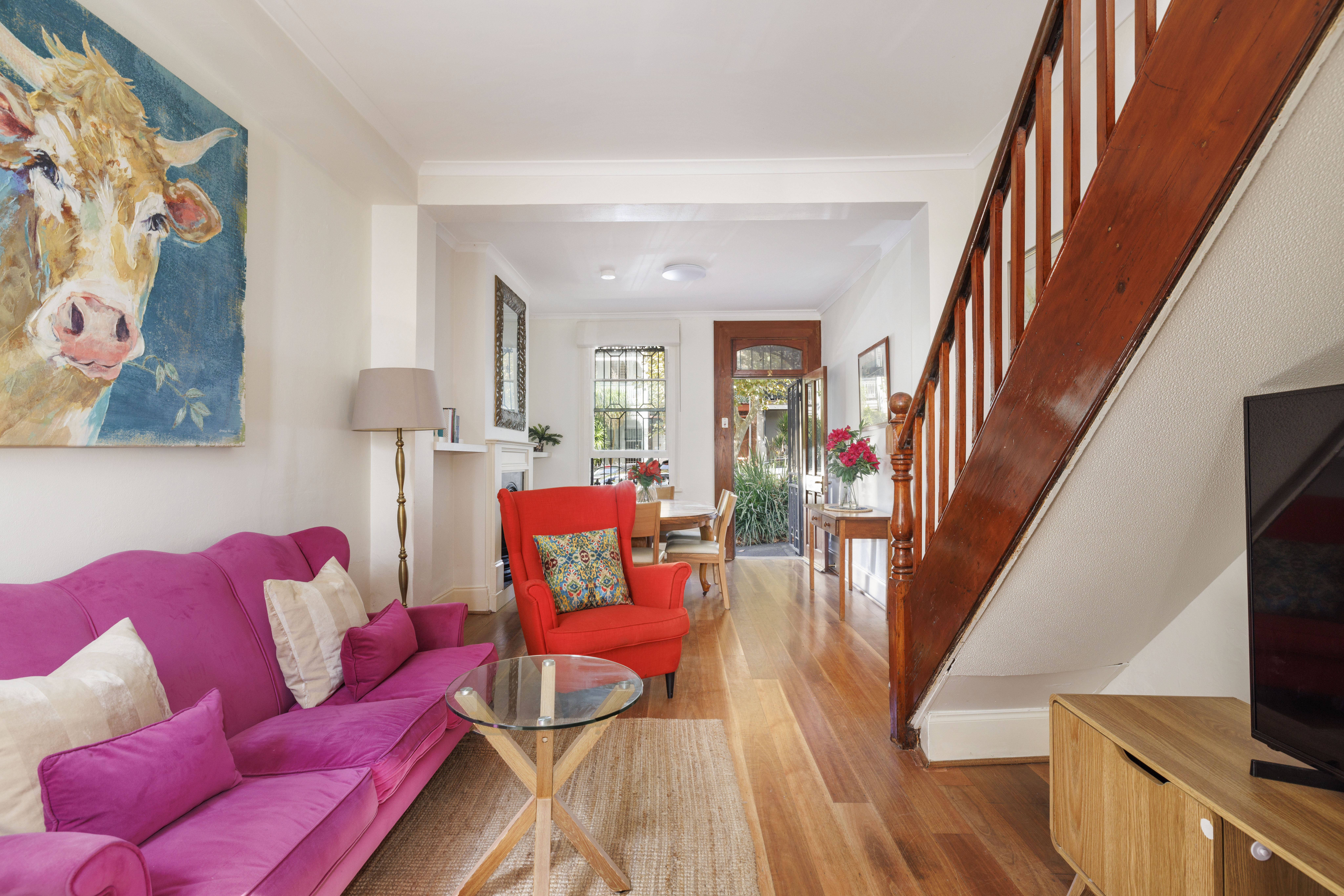 This first-in-row terrace might have one of the best positions in Surry Hills. It’s set in a wide and peaceful street with no through traffic, just garden streetscapes linking directly to Crown Street’s main village hub. It’s also moments to the light rail. There is an inviting warmth throughout its three levels, with a flowing, light-filled open living connecting to the courtyard, plus a whole other private sundeck off the bedroom upstairs.