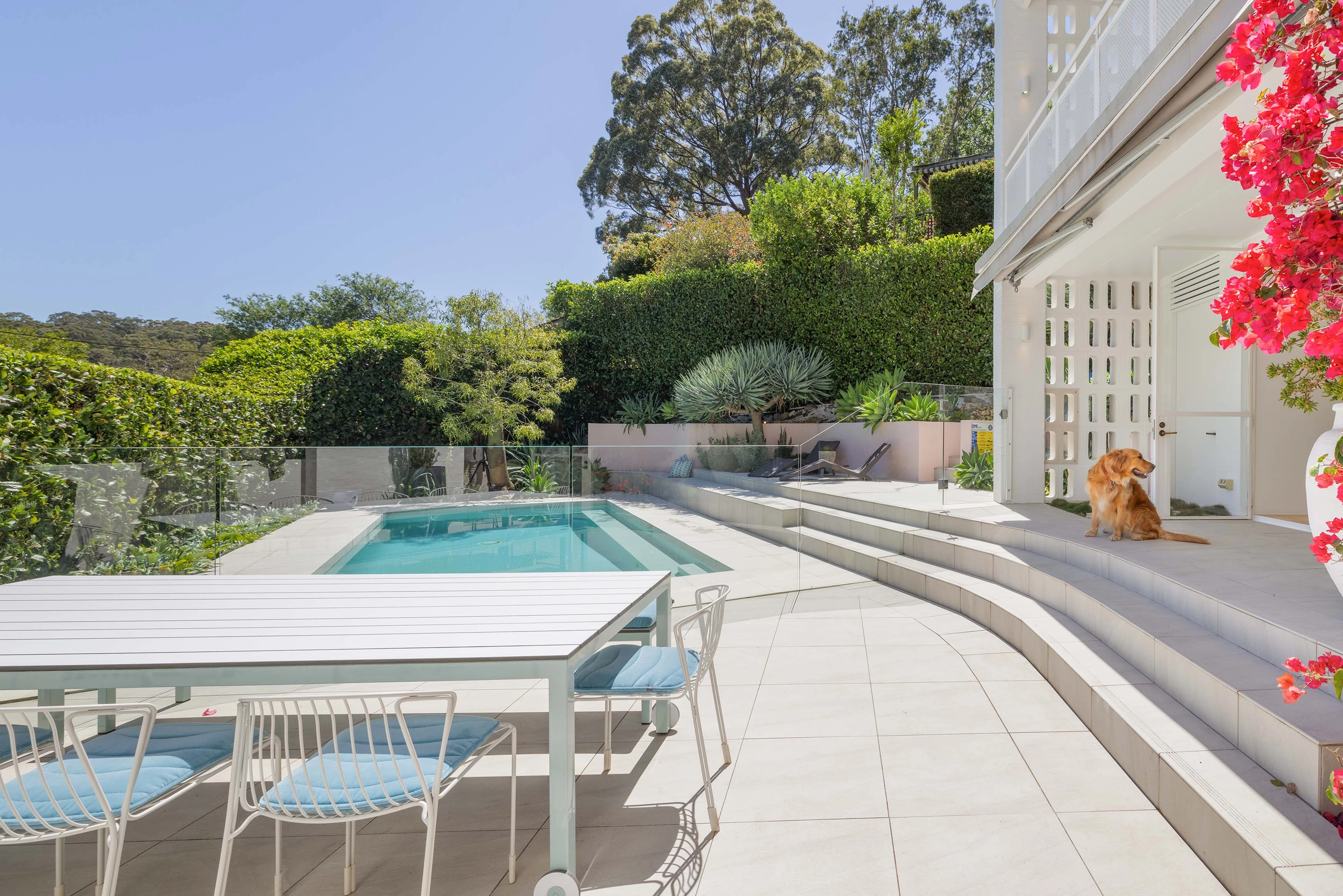 - Bi-fold doors, frangipani-framed terrace