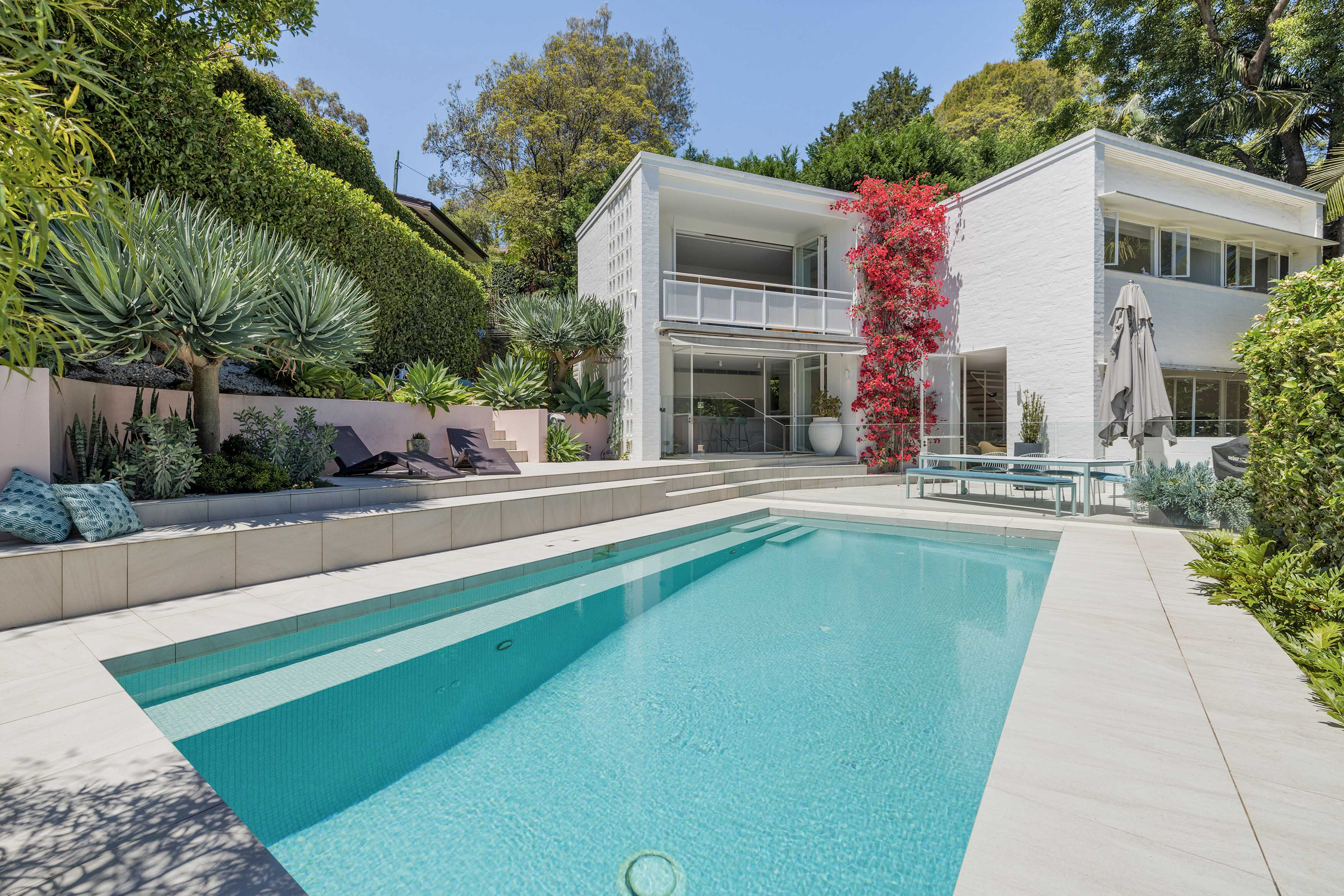 A mid-century modernist masterpiece from 1958, reworked by award-winning architects and interior designers ACME, this residence was originally built by Emil Fretze to capture inspiring bushland outlooks towards Northbridge and a spectacular living experience near Tunks Park and Middle Harbour, while offering easy access to both the CBD and Cammeray village. Renovated to the highest calibre with custom finishes, every detail has been conceived in balance with the original architecture, thoughtfully merged into the free-flowing interiors, oversized windows, landscaped poolside spaces and a north-facing aspect. A statement house in the area’s premier setting known as 'Architects Row’, with double secure carport and options for 3-car parking, in the Cammeray Public School catchment.