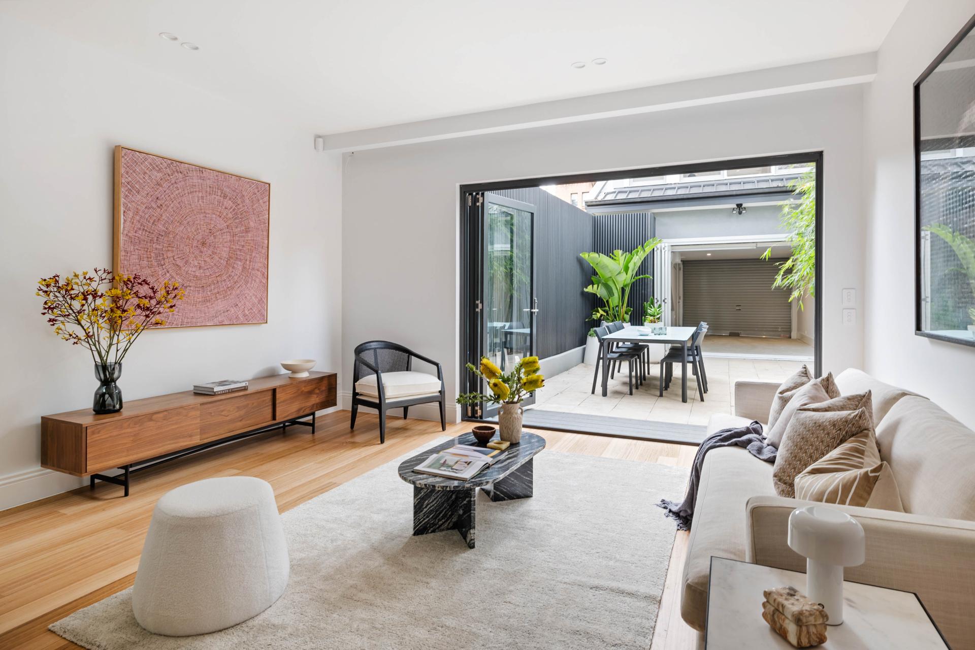 This showpiece home of finely crafted details and refined design sensibilities has an impressive sense of scale through two flowing levels, plus a rear studio/garage. Tucked in a peaceful one-way street between Newtown and Erskineville hubs, it’s classic Inner West lifestyle meets grand-scale modern luxury. Stroll to the train station, King St shops, cafés and bars, Sydney Park and Newtown Public School.
