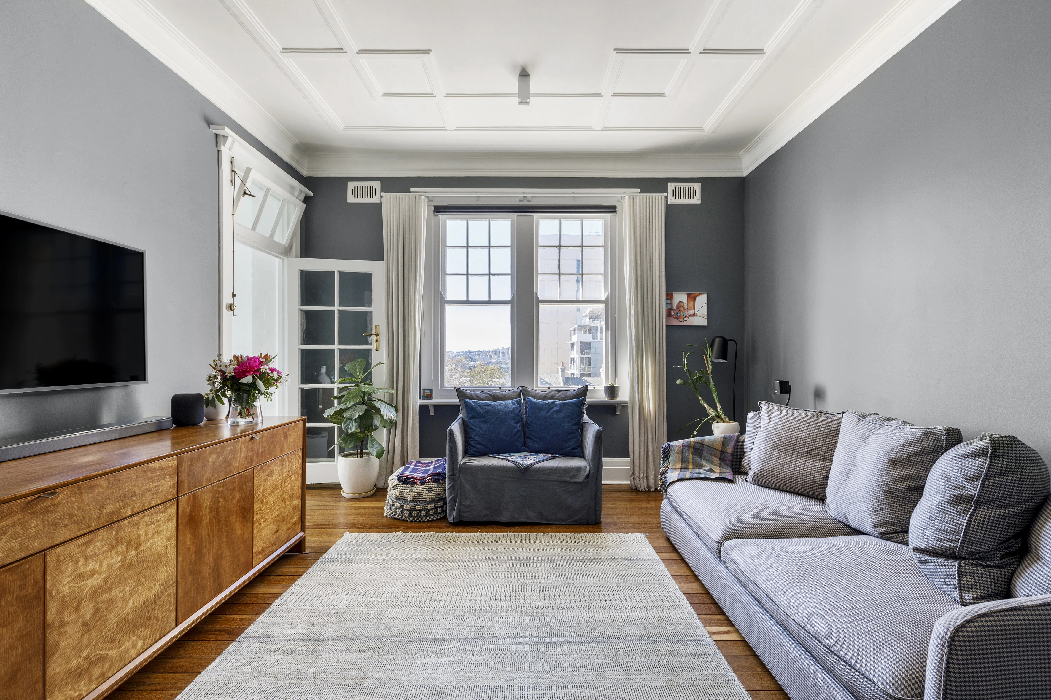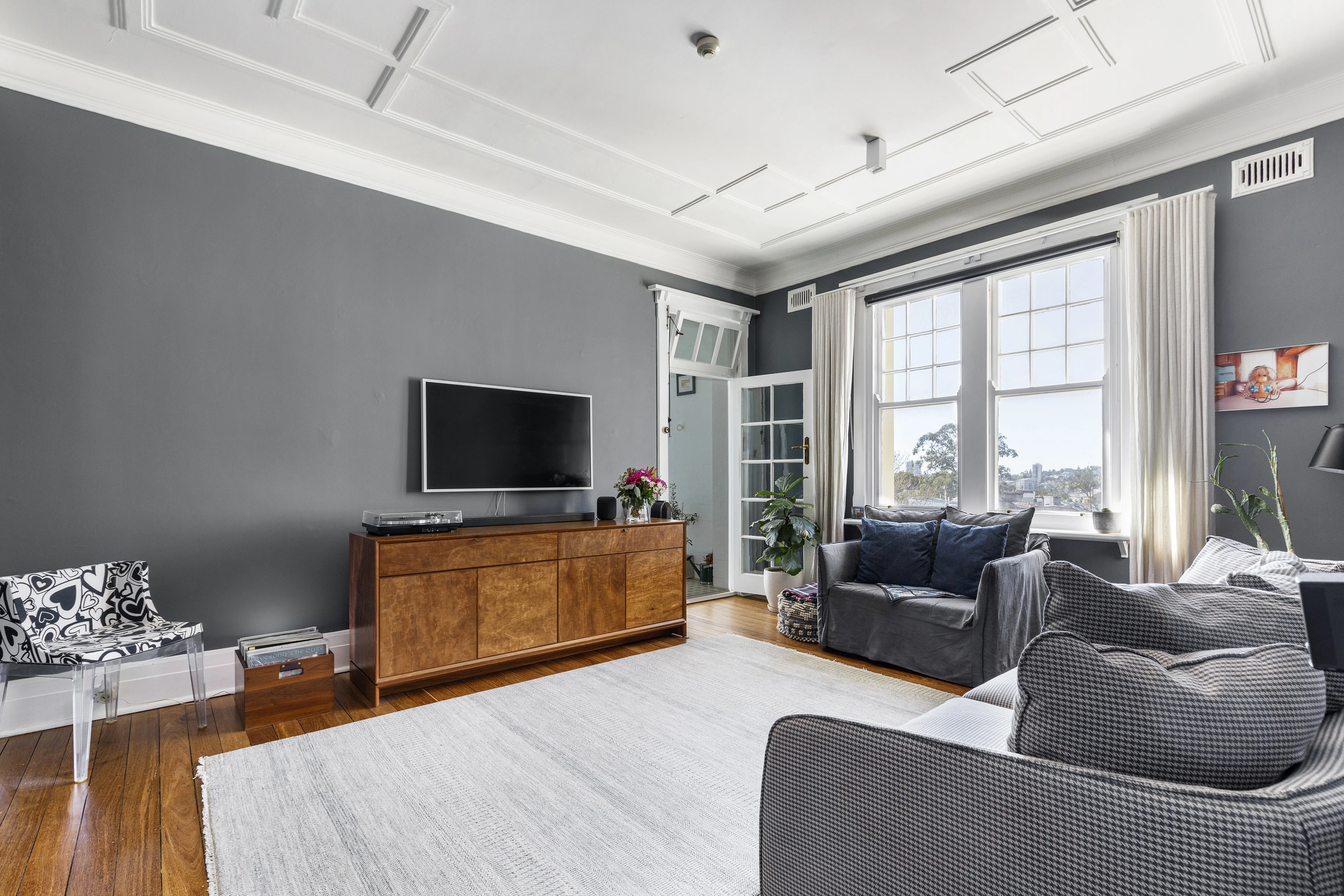 - Hardwood floorboards & high ceilings