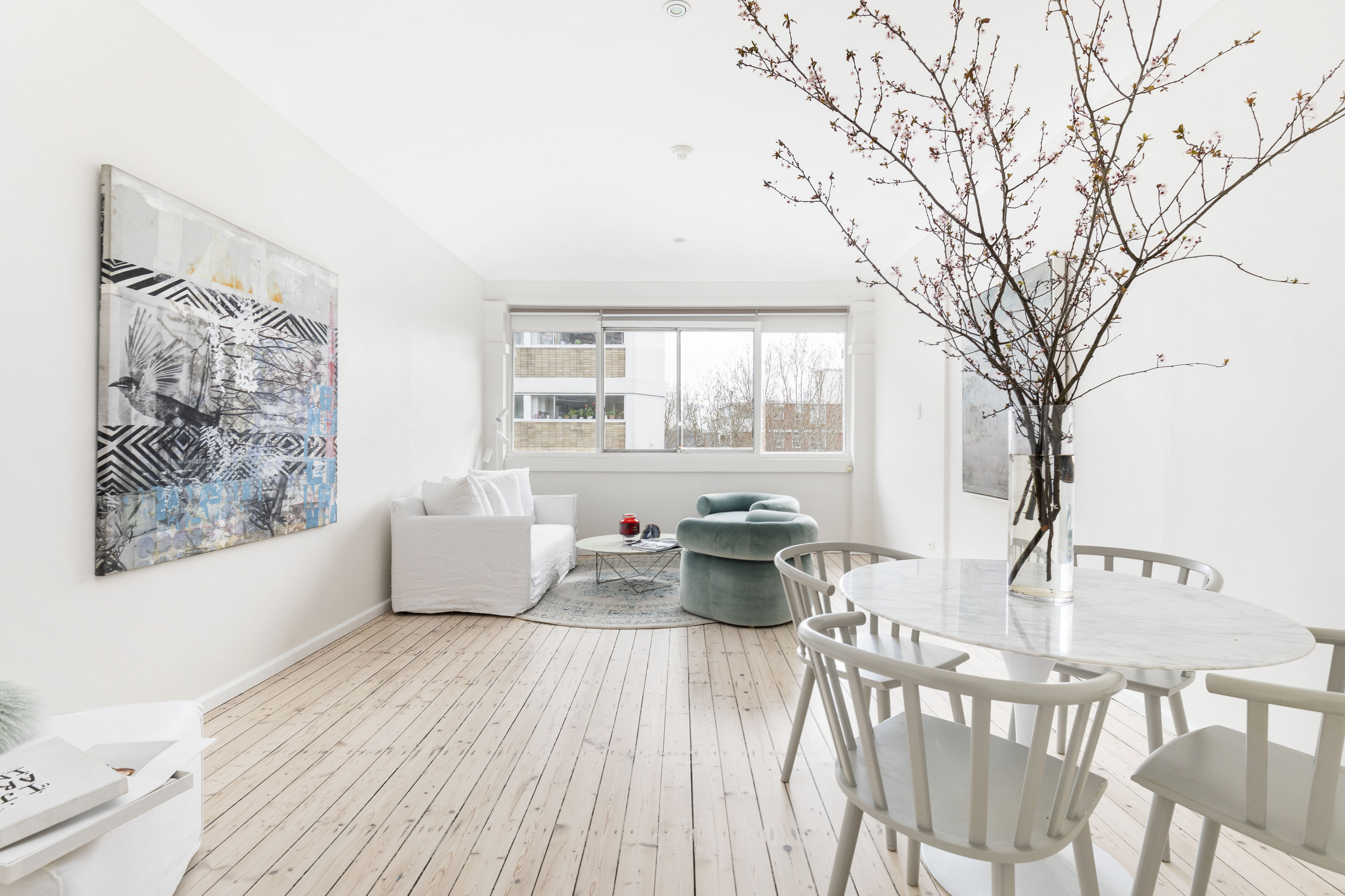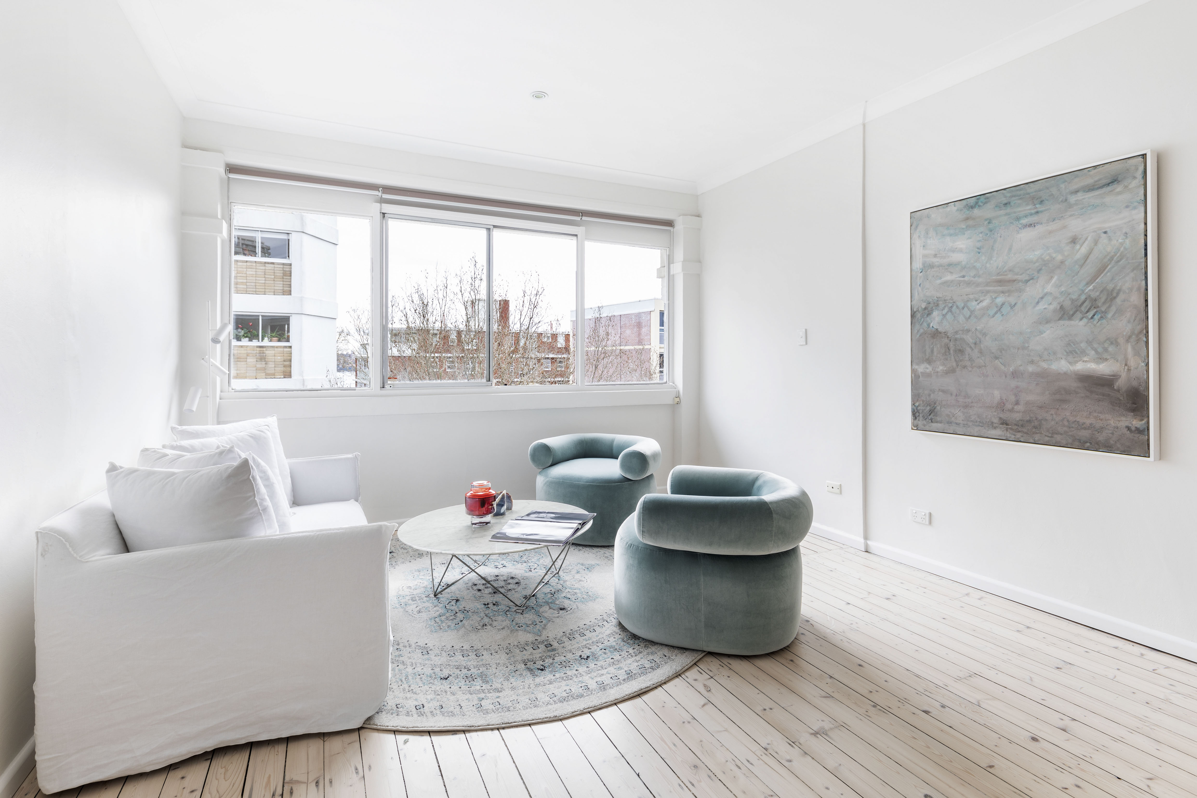 In a perfect position with treetop outlooks and supreme north light, this apartment is well designed for year-round enjoyment, with updated minimalist interiors that work seamlessly with the classic Art Deco surrounds. In one of the area’s renowned landmark buildings, the best of village life is just around the corner. Celebrated dining haunts on your doorstep and the harbour down the street.