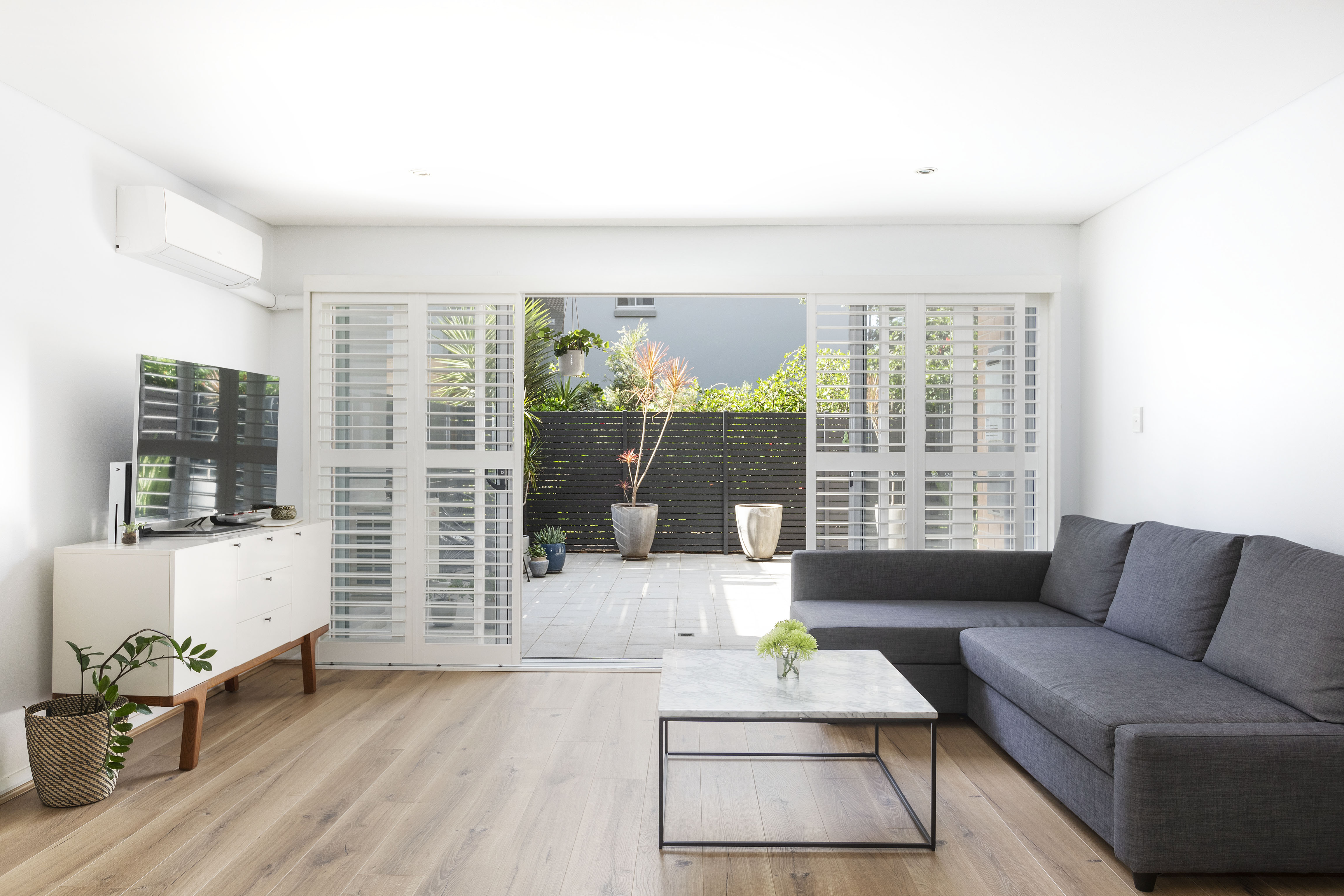 As two-bedroom apartments go, this one overdelivers with its large courtyard garden + studio, indoor-outdoor openness and master with ensuite. Just steps to village shops and transport, yet it feels peaceful & private inside.