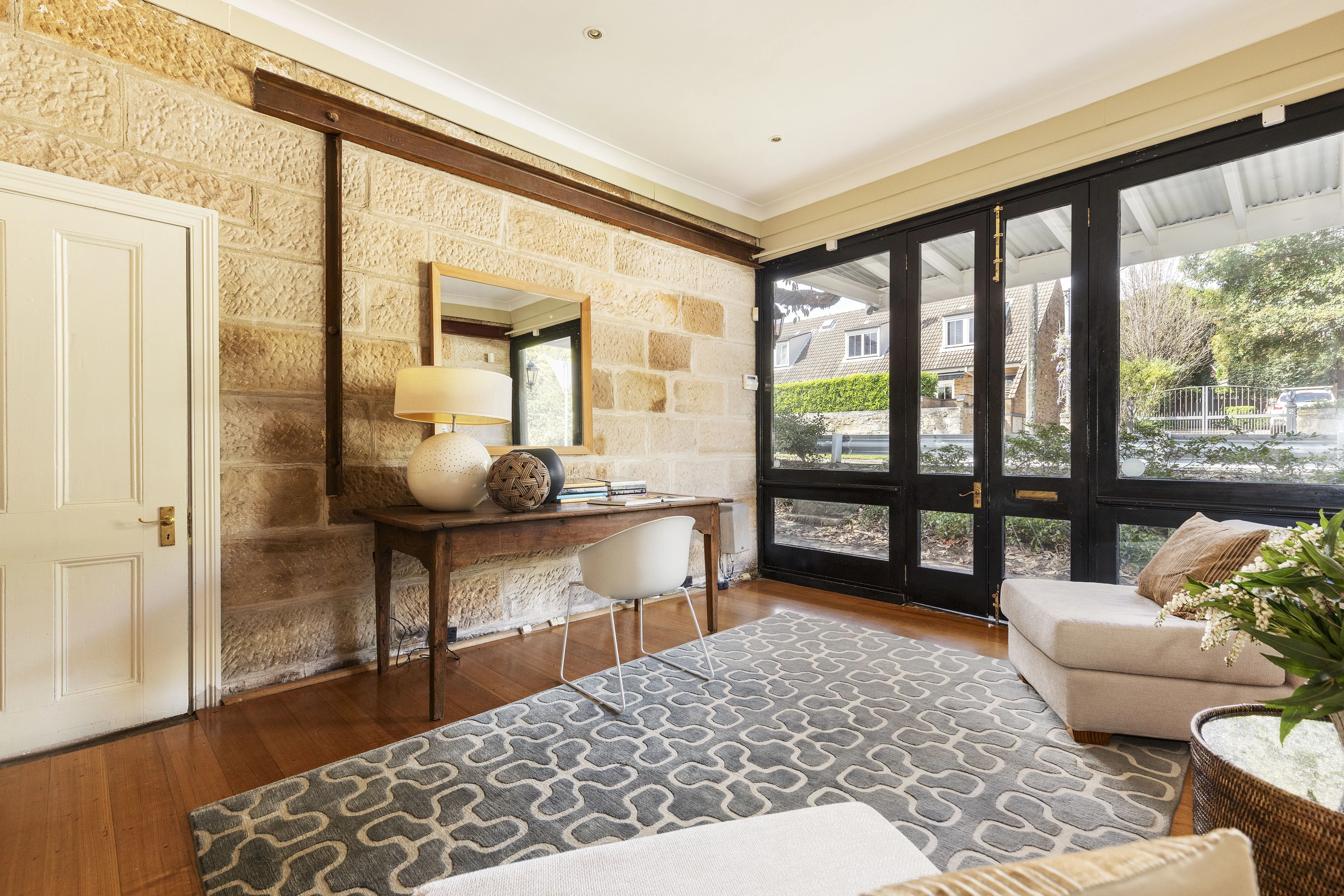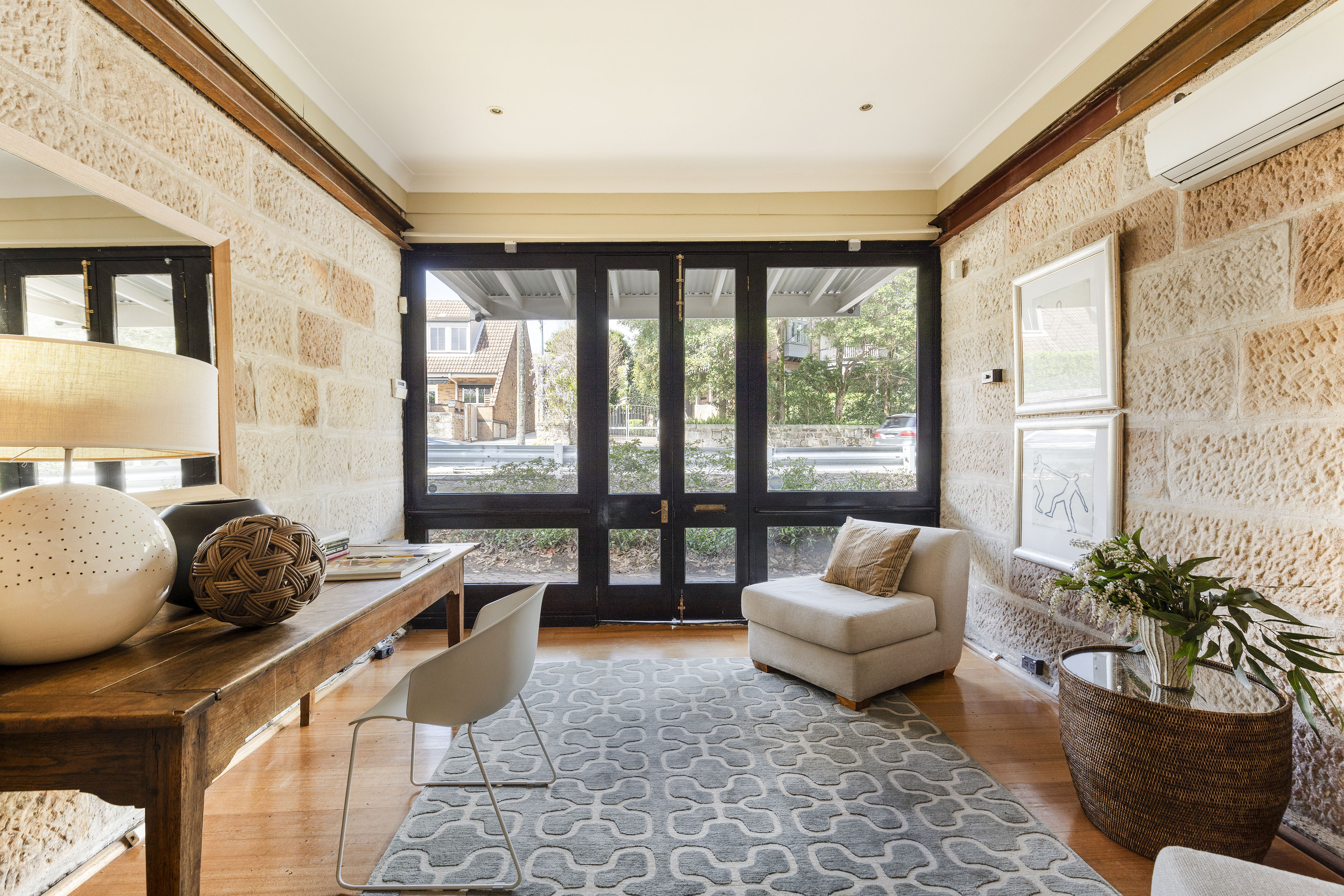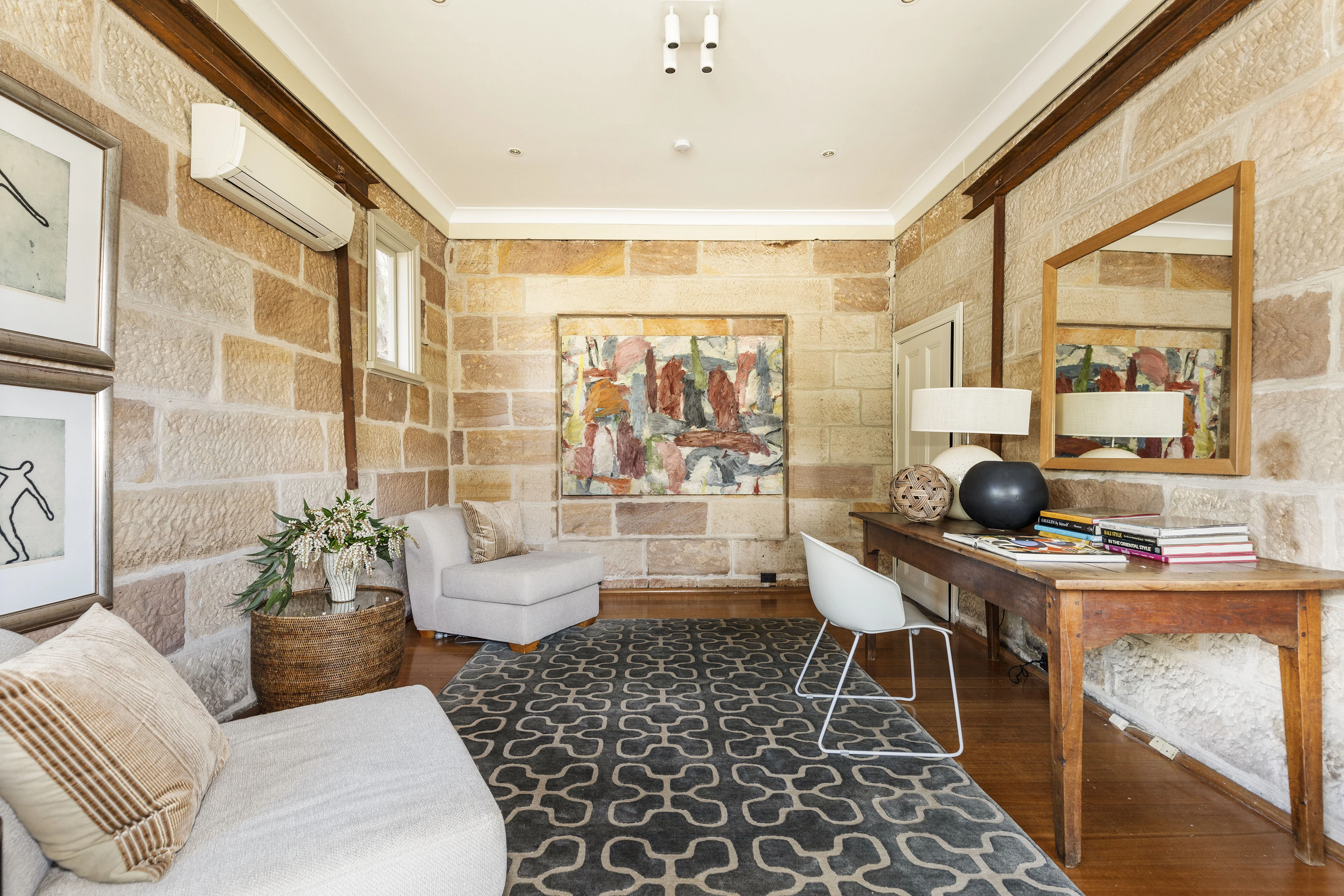 - Feature sandstone walls in lounge & beds