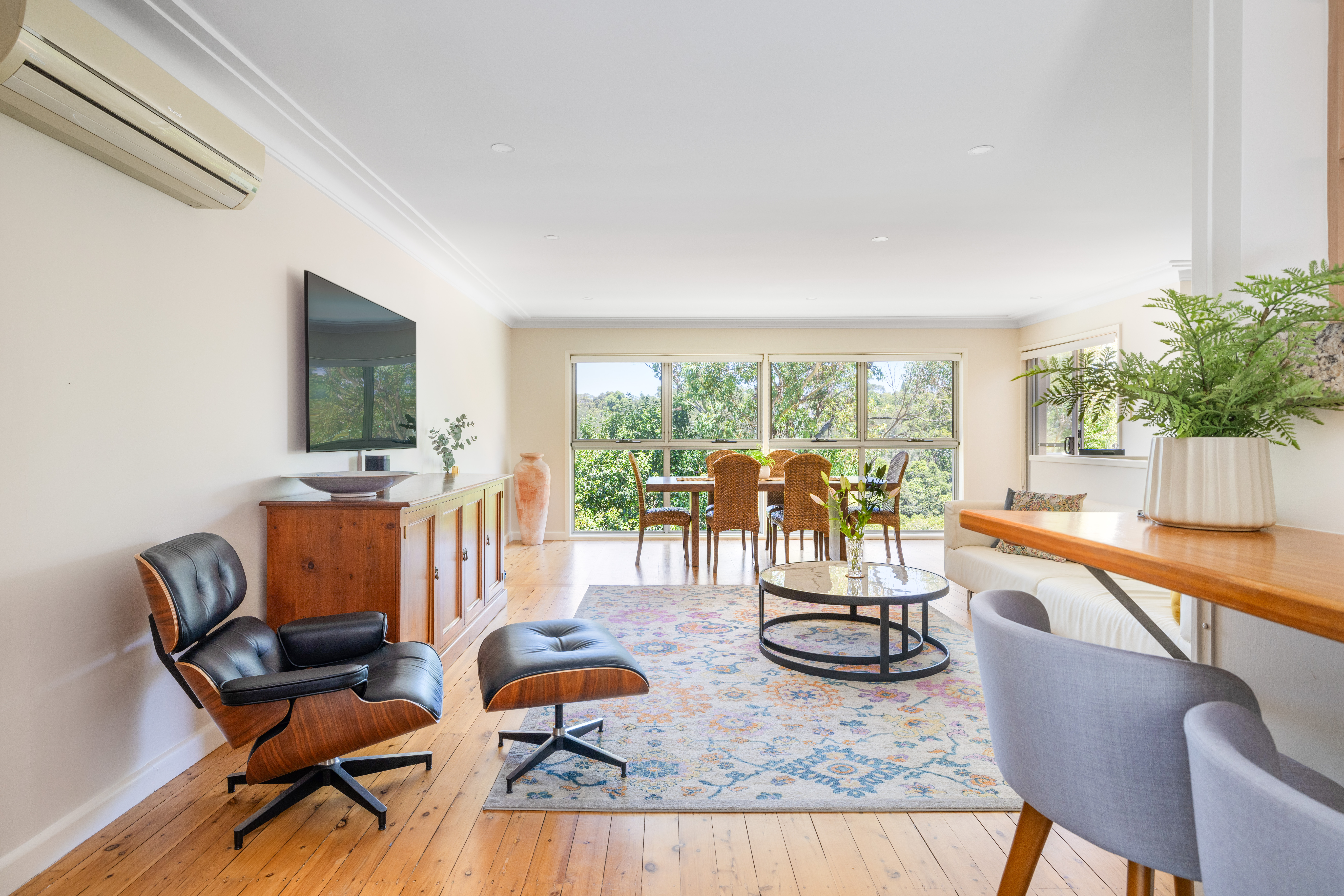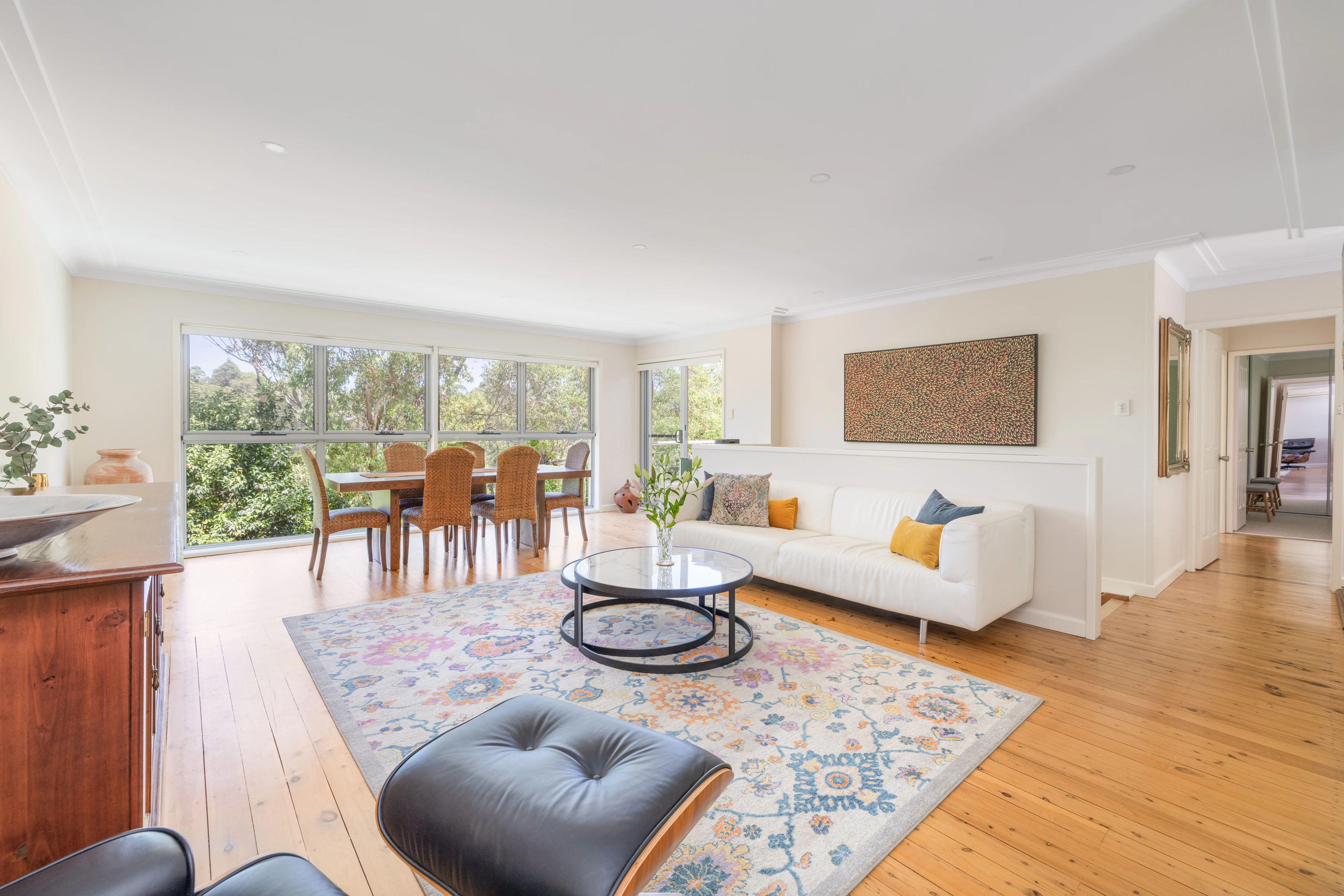 - Spacious open living, polished floorboards