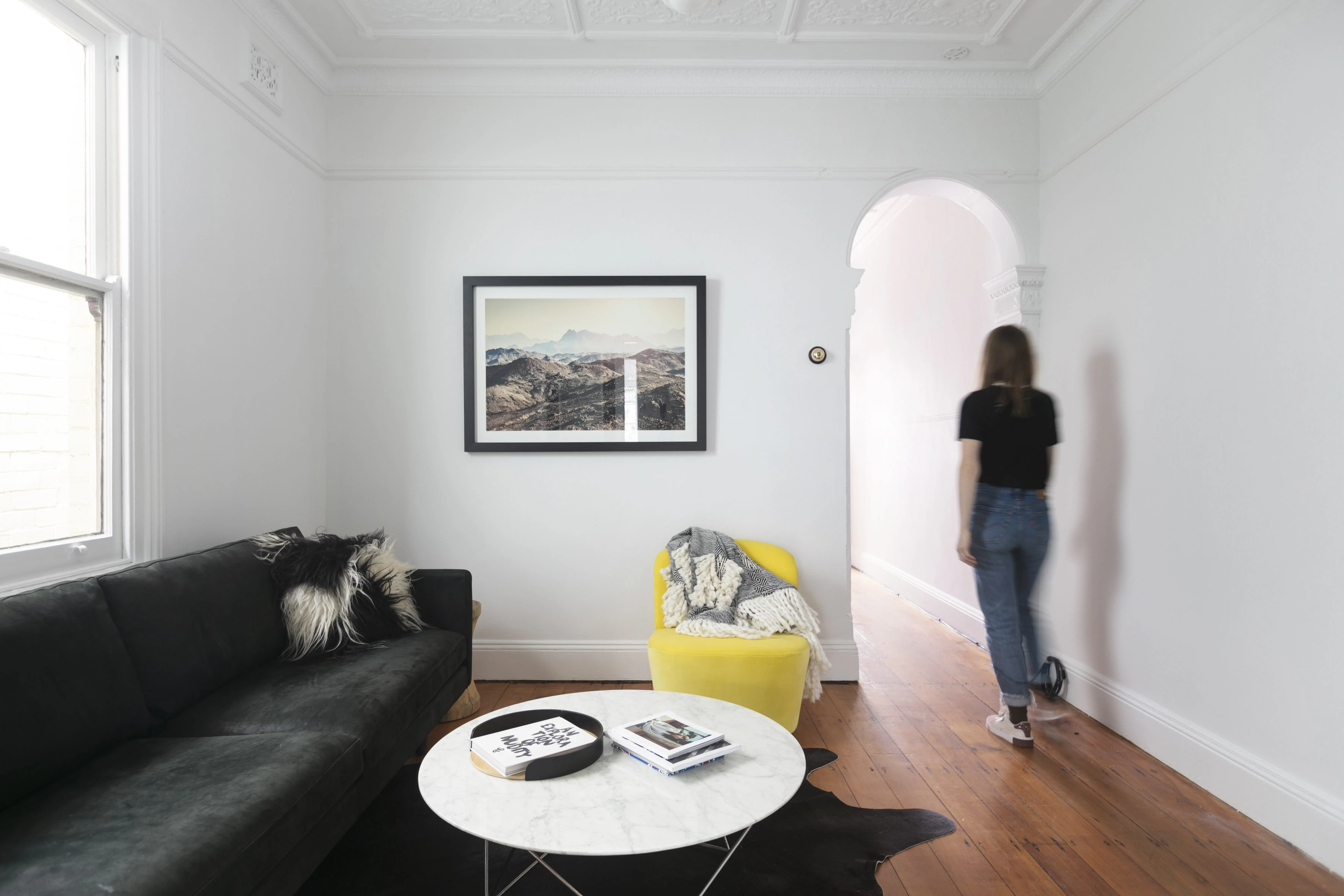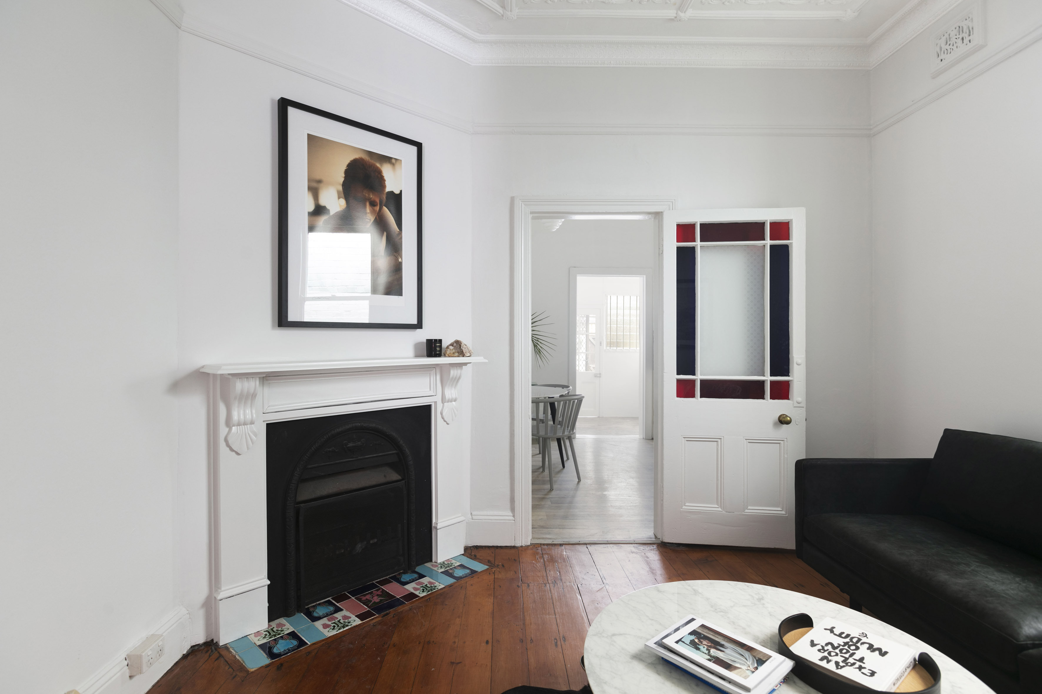 - High ornate ceilings, timber floorboards