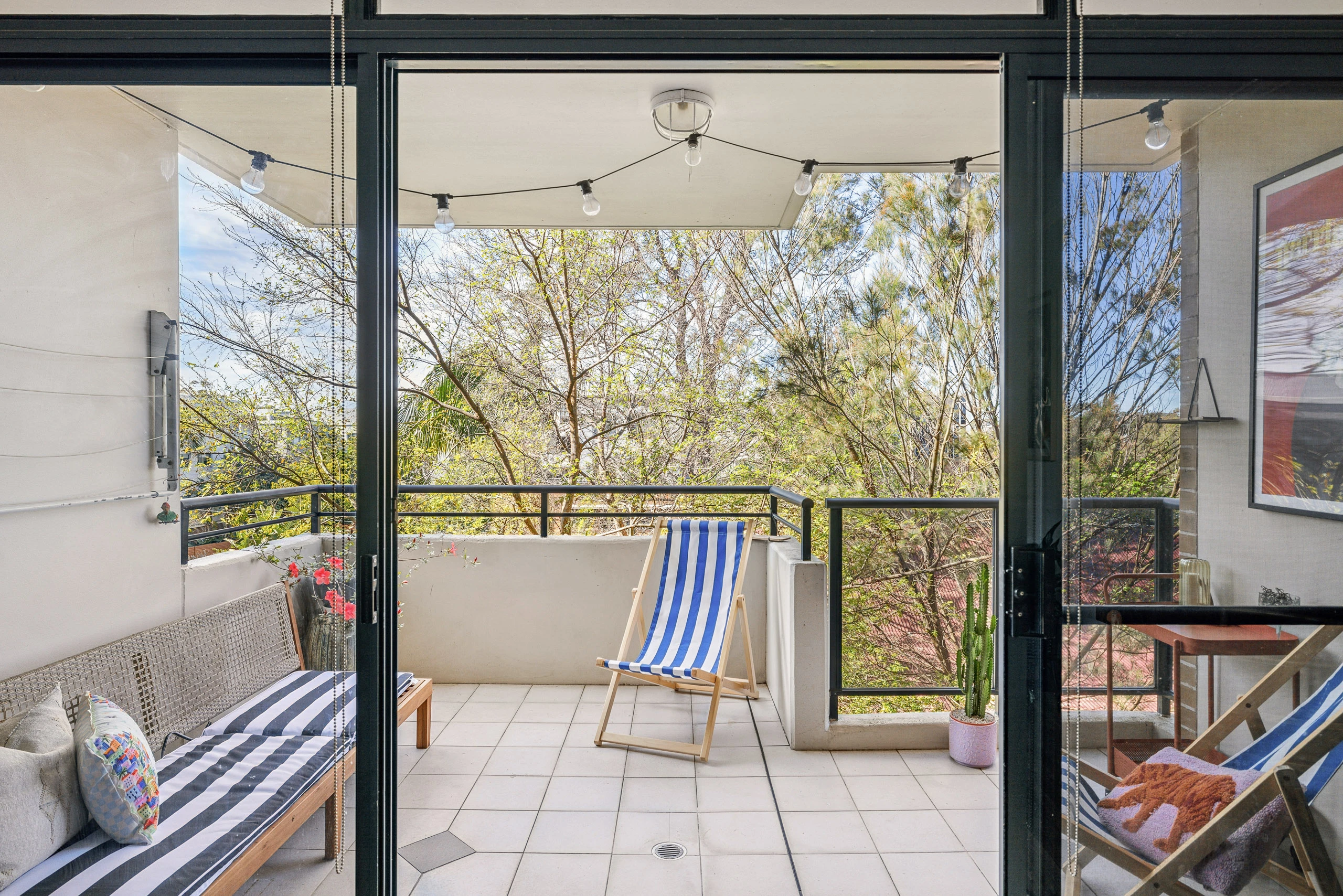 - Covered balcony, private treetop view