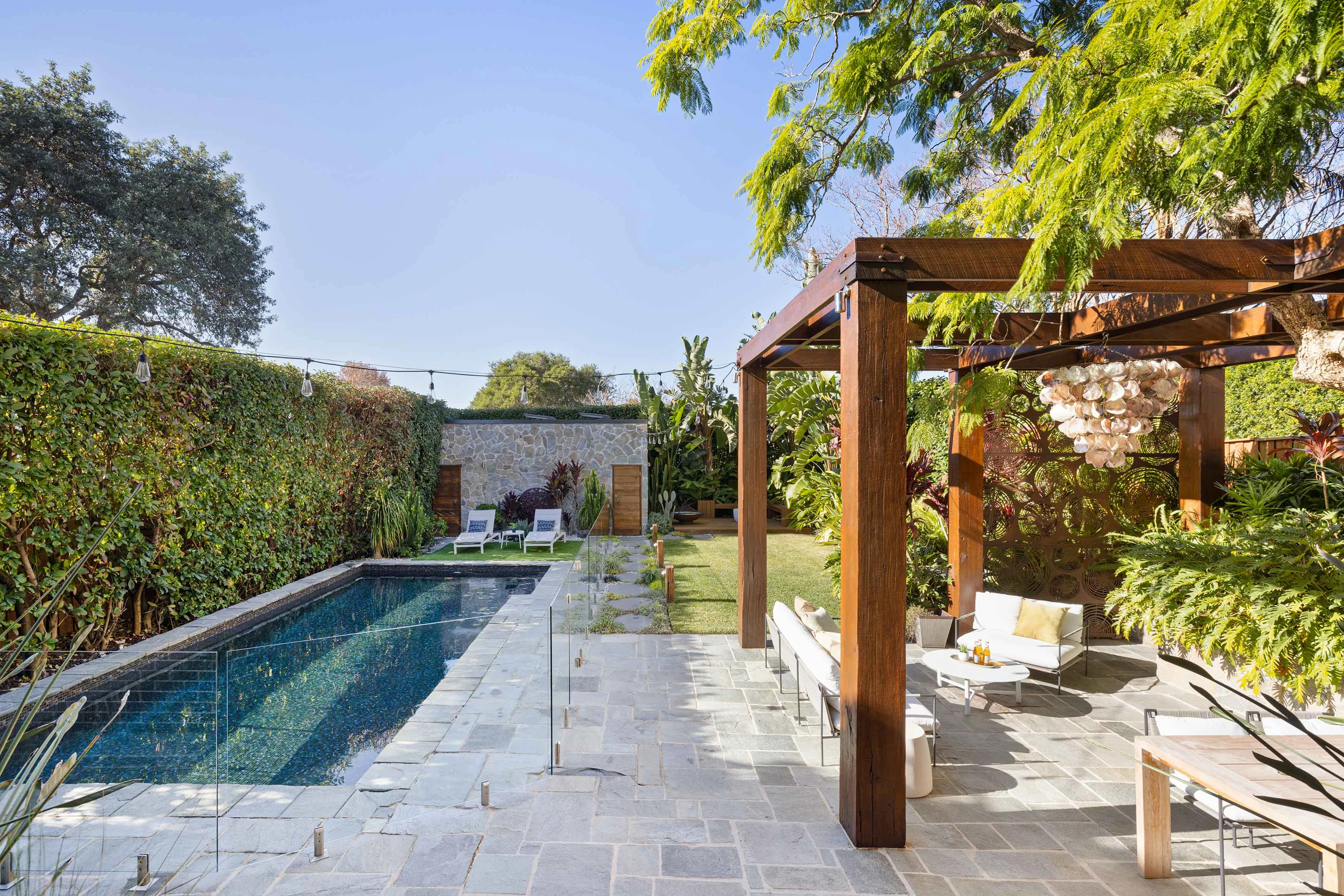 - Heated/tiled pool, outdoor stone bath, solar
