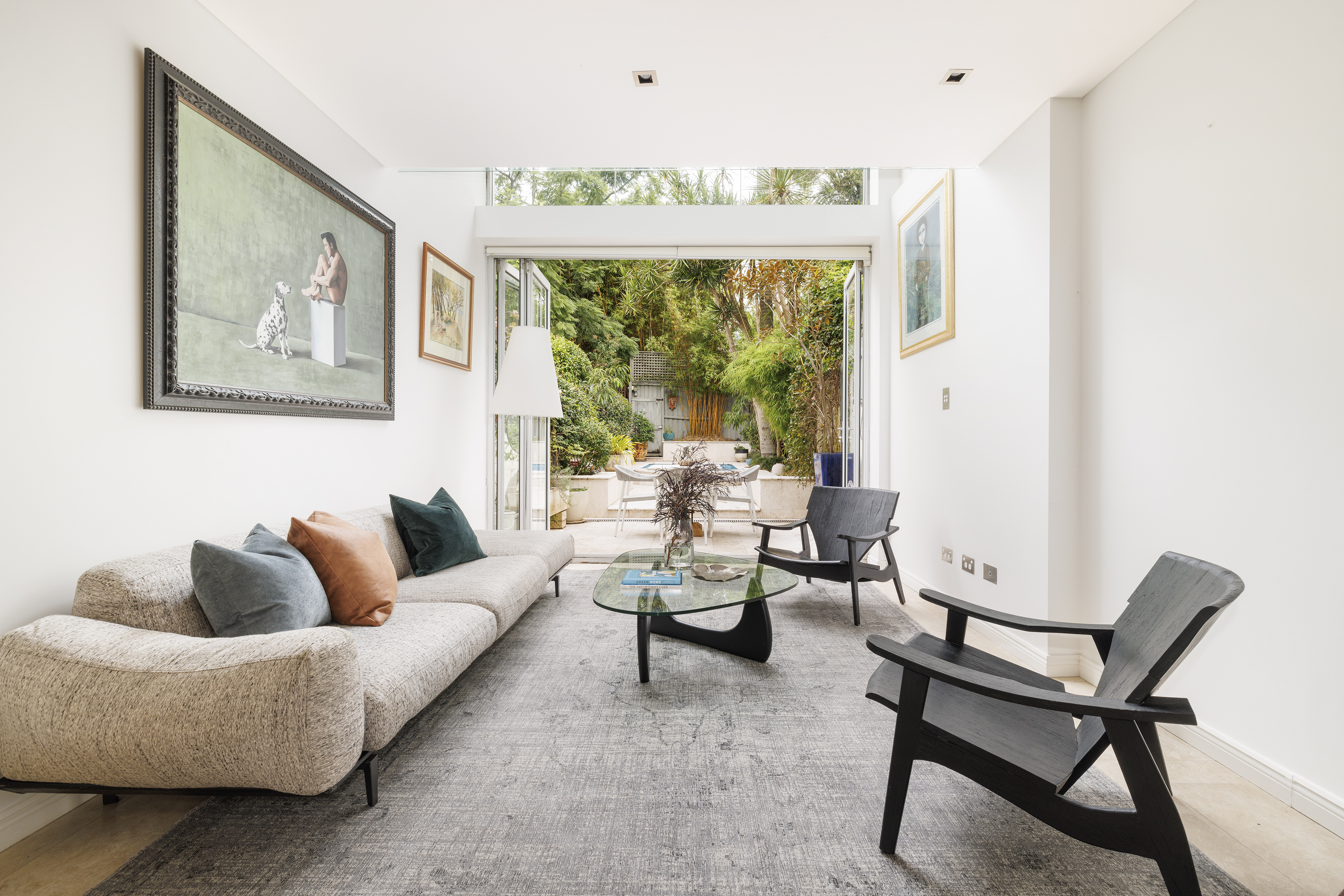 This is rarefied Woollahra lifestyle in a luxurious yet low-upkeep package. Peacefully positioned in a wide, tree-lined street between Queen Street village hub and Centennial Park, this three-bedroom residence has a fluid open floorplan connecting to outdoor space on both levels. The travertine entertainer’s courtyard includes a Roman-style plunge pool in Bisazza mosaics and is wrapped in leafy privacy.