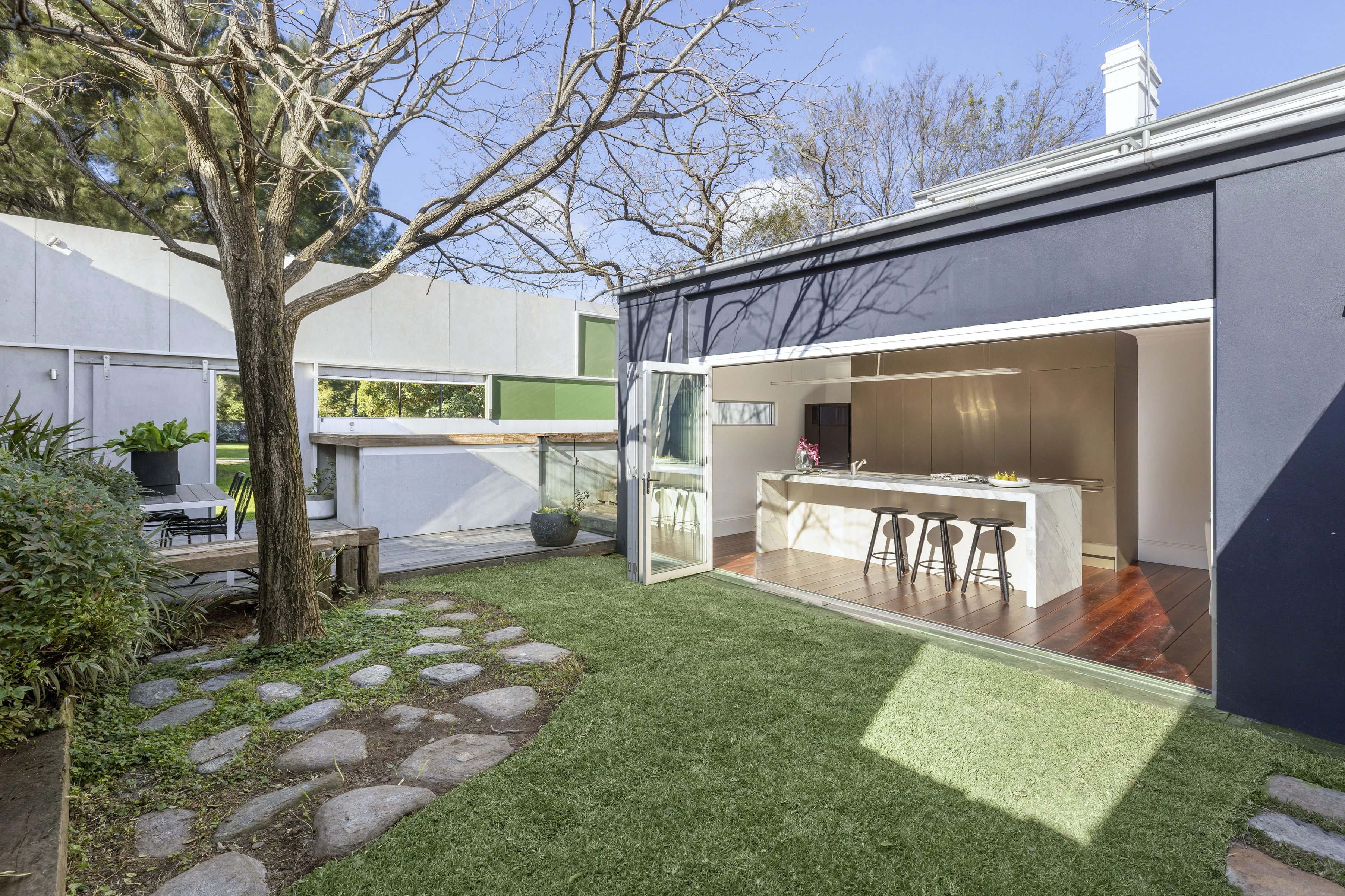 Completely transformed to a contemporary lifestyle space, this park-front character house is an impressive home and entertainer, wrapping around its lawns, timber decks and poolside leisure areas. In what is arguably one of Newtown’s best positions, it has direct access to Camperdown Memorial Rest Park, while just a few blocks to King Street’s buzzing heart of dining and entertainment. A unique one-off statement, in the catchment for North Newtown Primary School and Newtown Performing Arts.