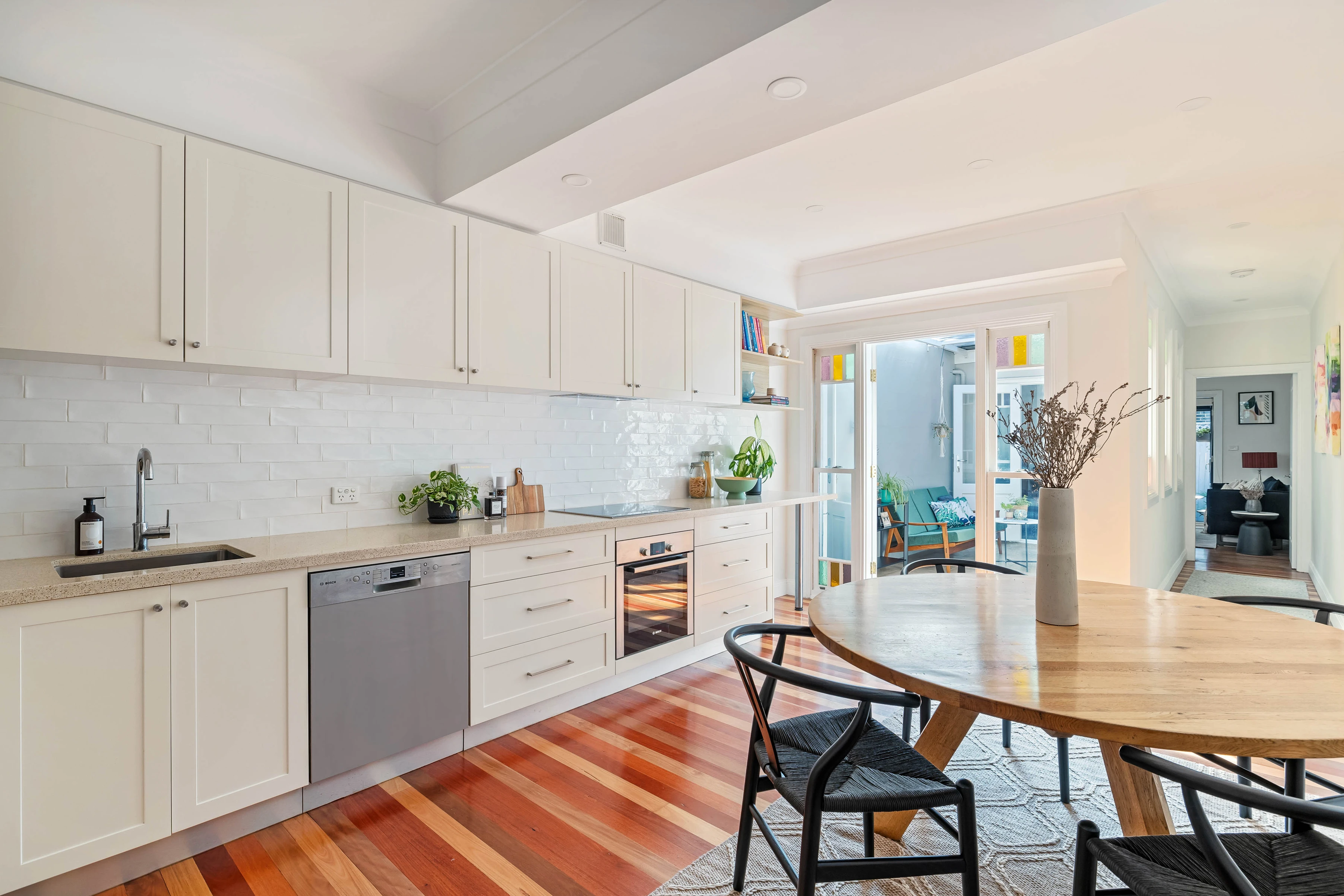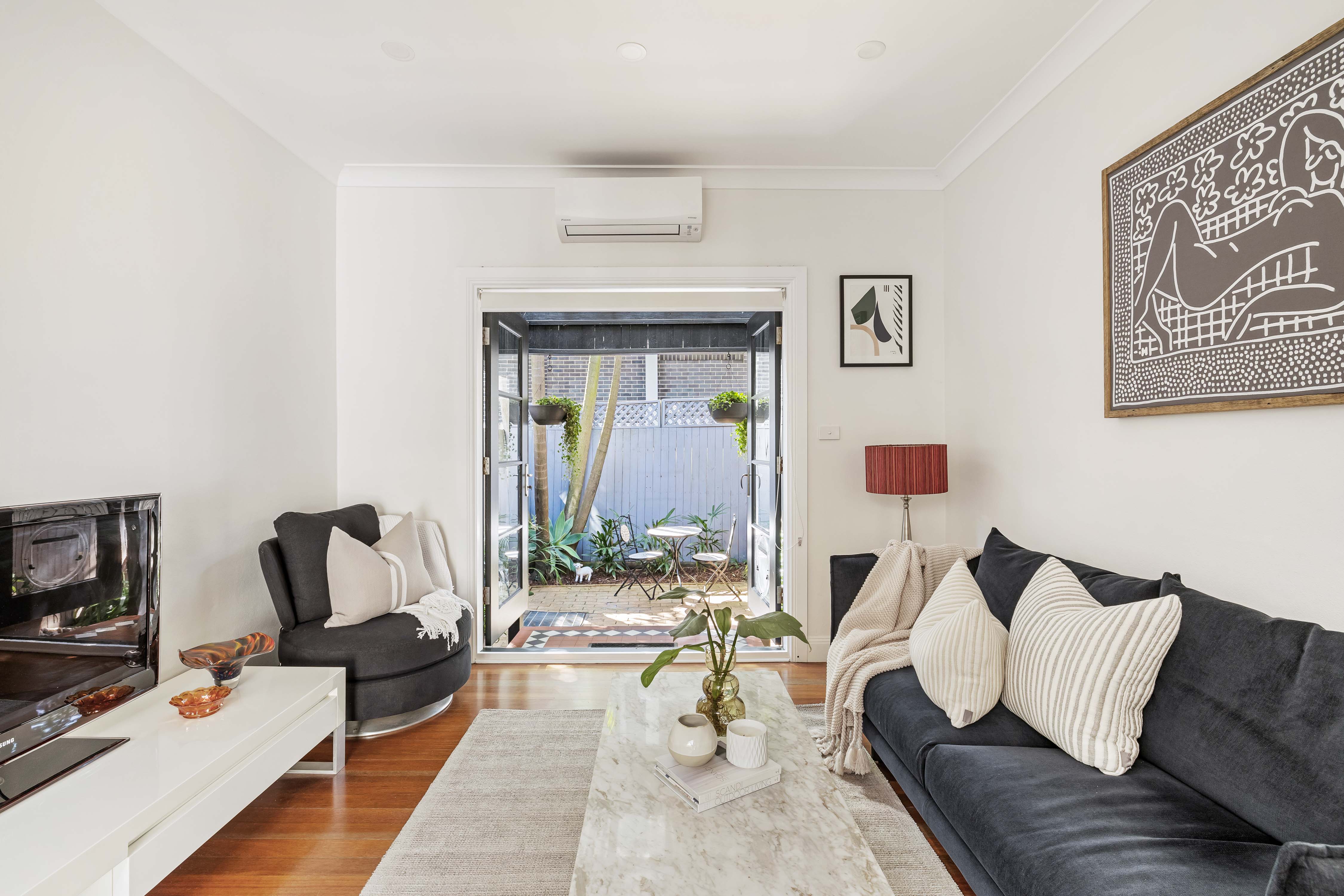 A renovated character home with a north-facing courtyard, this residence is a thoughtfully designed space of preserved detail and contemporary style. With its design unfolding around a central atrium for great interior light, the perfect rear aspect also delivers year-around appeal for outdoor entertaining. A block to the area’s village heart and dining institutions, step into the epicentre of Petersham.